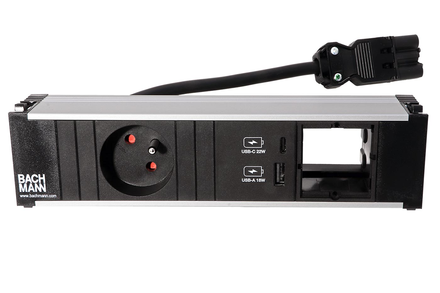 BACHMANN Systém CONI, box pro 3 moduly, 1x zásuvka CZ + zdroj 22W (USB A+C), 1x volné (912.1677)