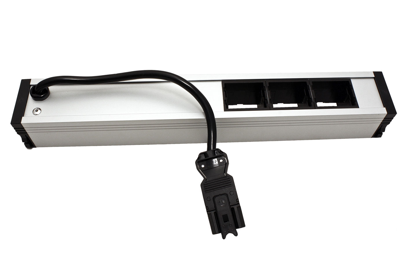 Box se 3 napájecími zásuvkami (CZ) a 3 volnými pozicemi, určený pro montáž do dlouhého rámu systému CONI.