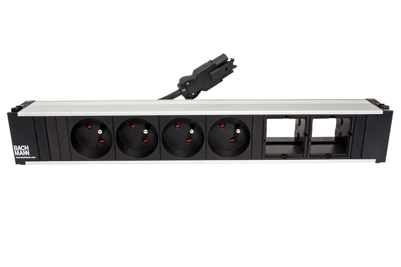 Box se 4 napájecími zásuvkami (CZ) a 2 volnými pozicemi, určený pro montáž do dlouhého rámu systému CONI.