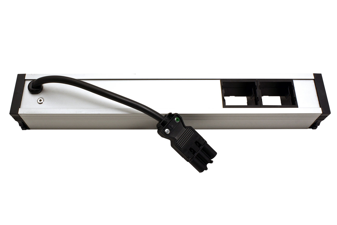 Použití: Box se 4 napájecími zásuvkami (CZ) a 2 volnými pozicemi, určený pro montáž do dlouhého rámu systému CONI.;