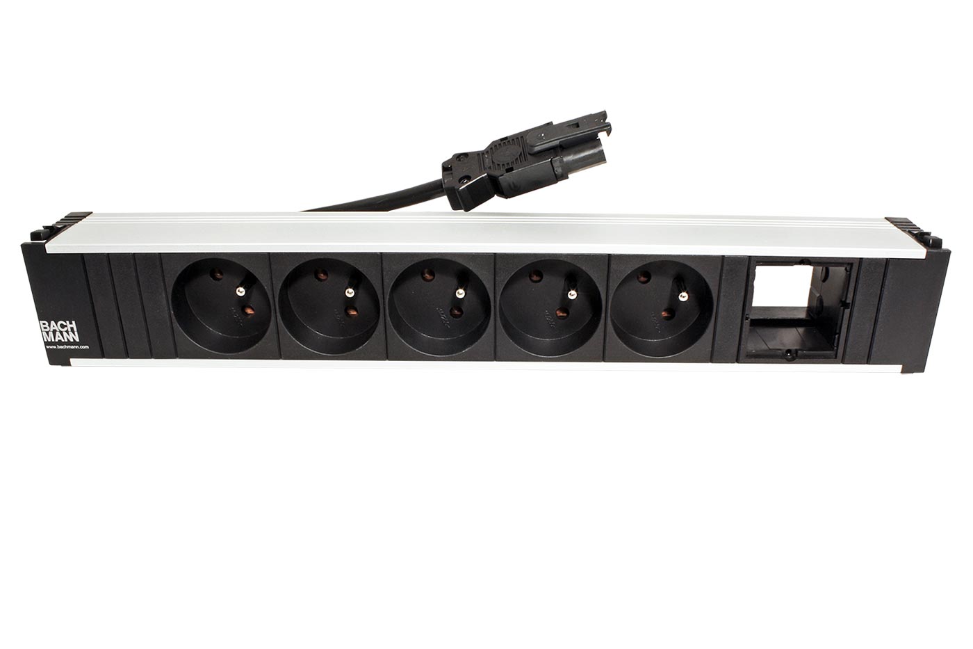 Použití: Box s 5 napájecími zásuvkami (CZ) a 1 volnou pozicí, určený pro montáž do dlouhého rámu systému CONI.;