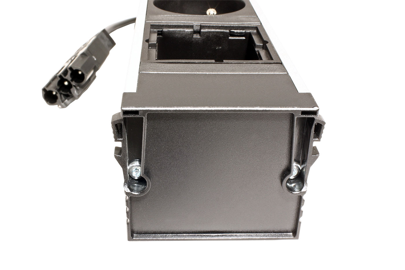 Box s 5 napájecími zásuvkami (CZ) a 1 volnou pozicí, určený pro montáž do dlouhého rámu systému CONI.