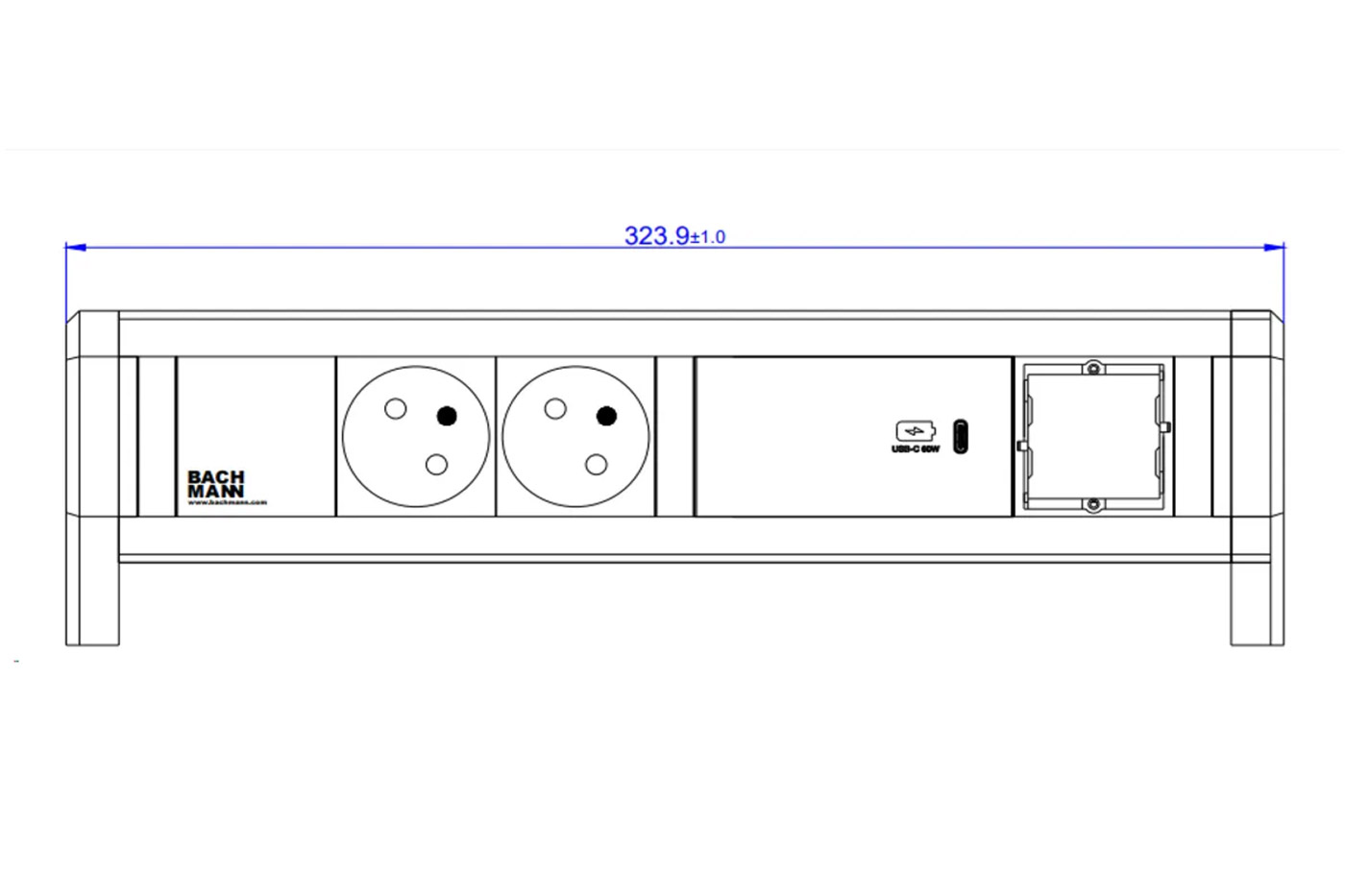BACHMANN Systém DESK 1, 2x zásuvka CZ, zdroj 60W (USB C) (902.0876)