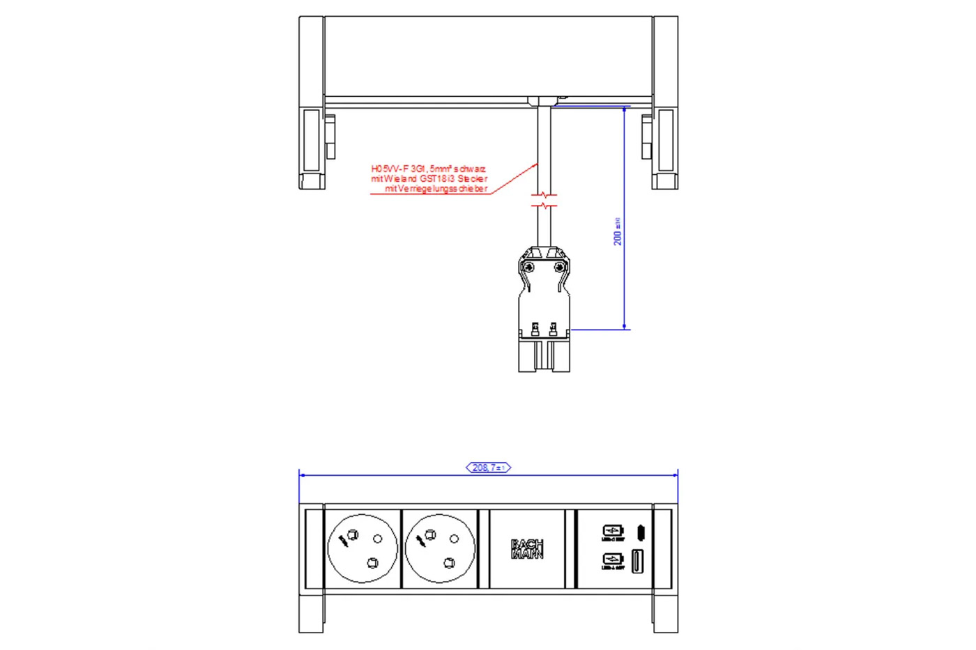 Použití: Elegantní pevné přípojné místo jednoduše montovatelné na stolní desku. Umožňuje snadnou montáž na okraj stolu, nebo na plochu stolu pomocí lepících podložek (nejsou součástí balení). Box s 2 zásuvkami CZ a napájecím modulem 22W (USB A + USB C). Je vybaven bočnicemi a posuvnými úhelníky pro upevnění na stůl.;