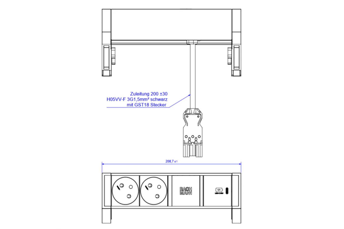 BACHMANN Systém DESK 2, 2x zásuvka CZ, zdroj 30W (USB C), černý/stříbrný (937.320)