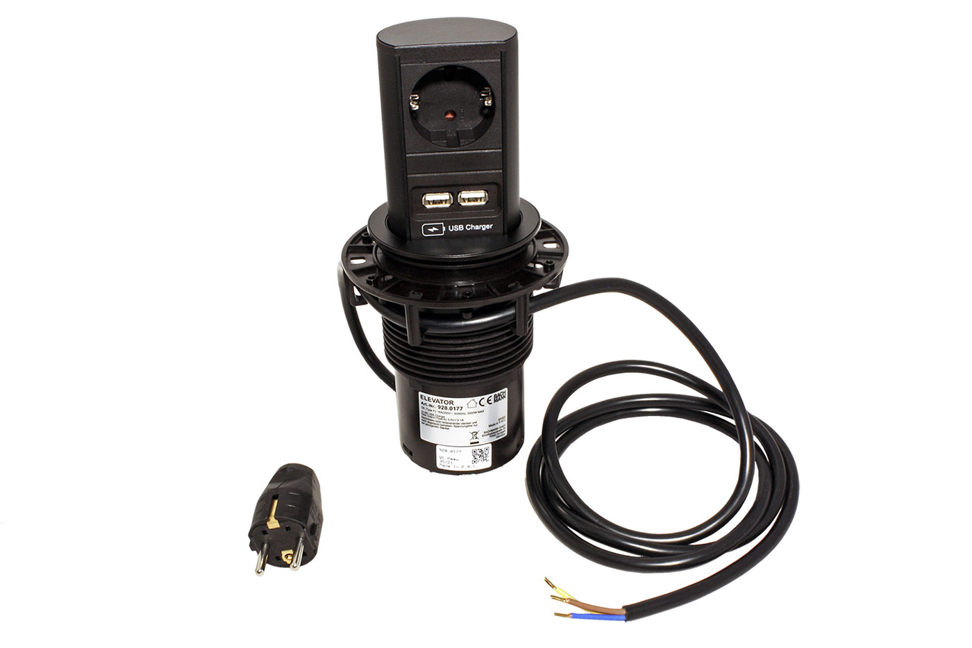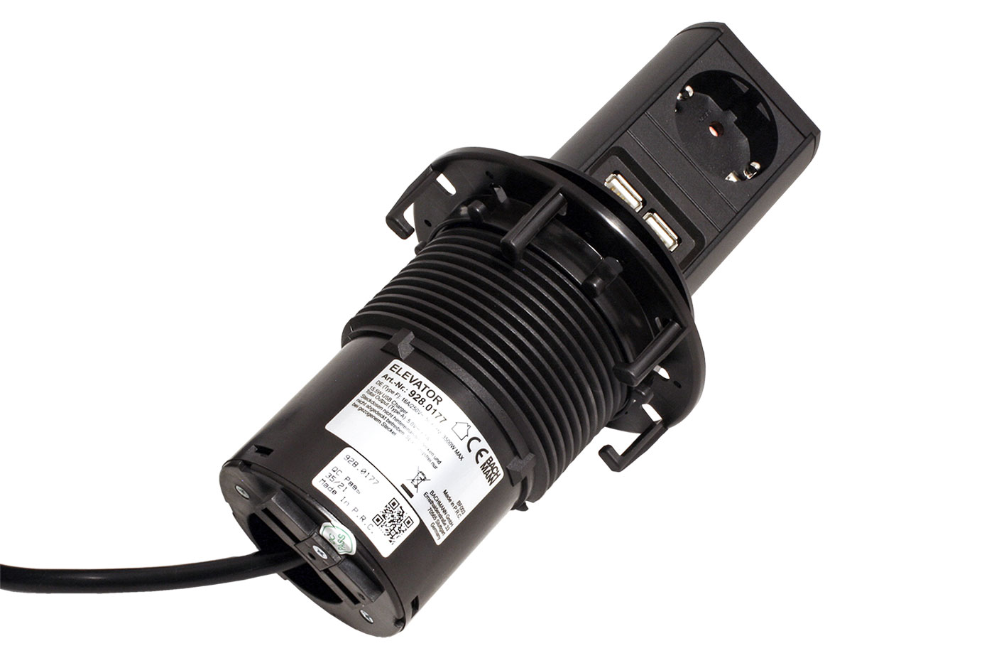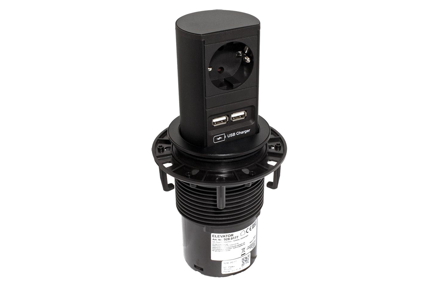 BACHMANN Systém Elevator, 1x zásuvka DE, zdroj 15W (2x USB A), černý (928.0177)