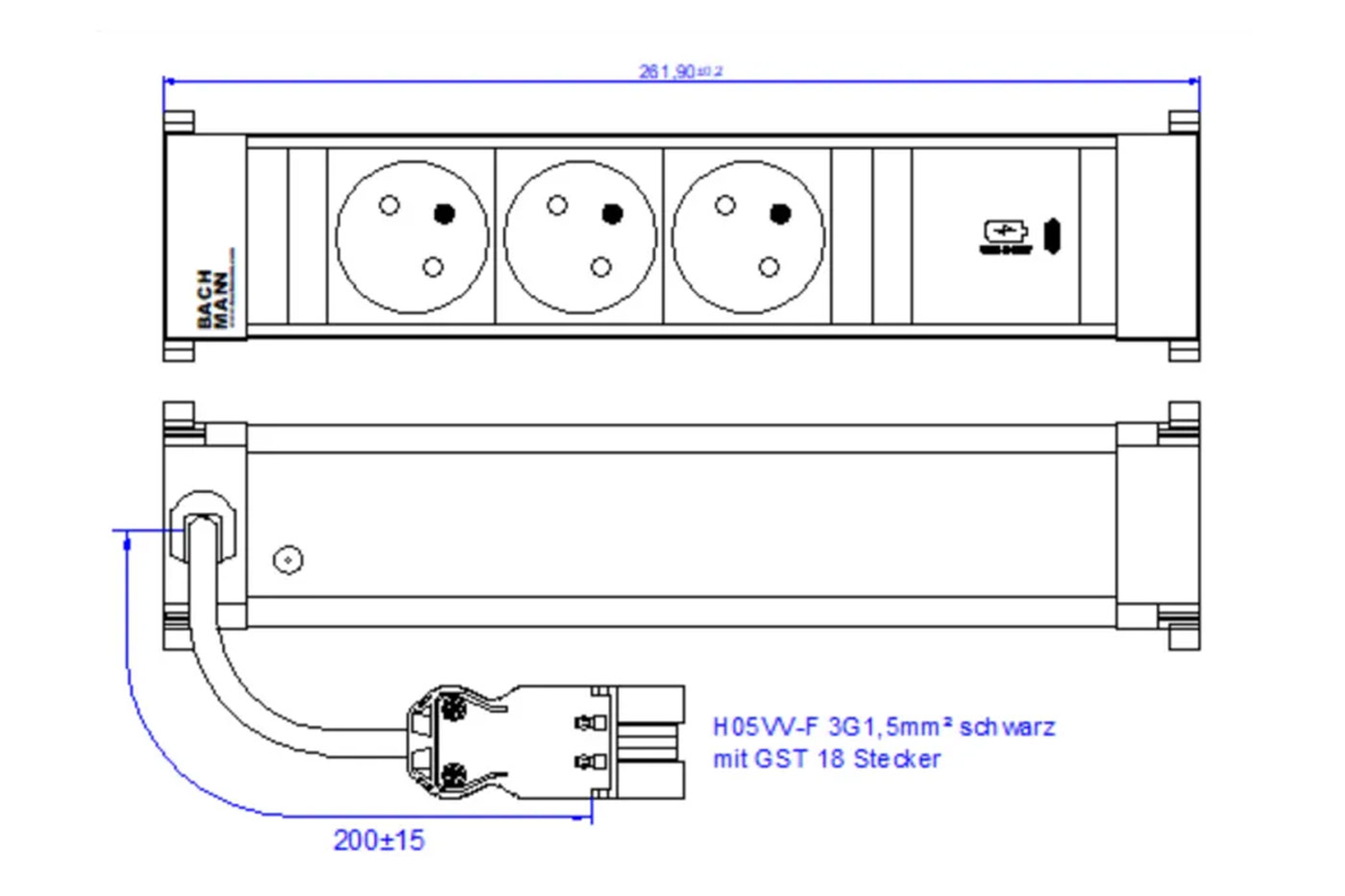 Kabel: 3x 1,5mm2, H05VV-F;