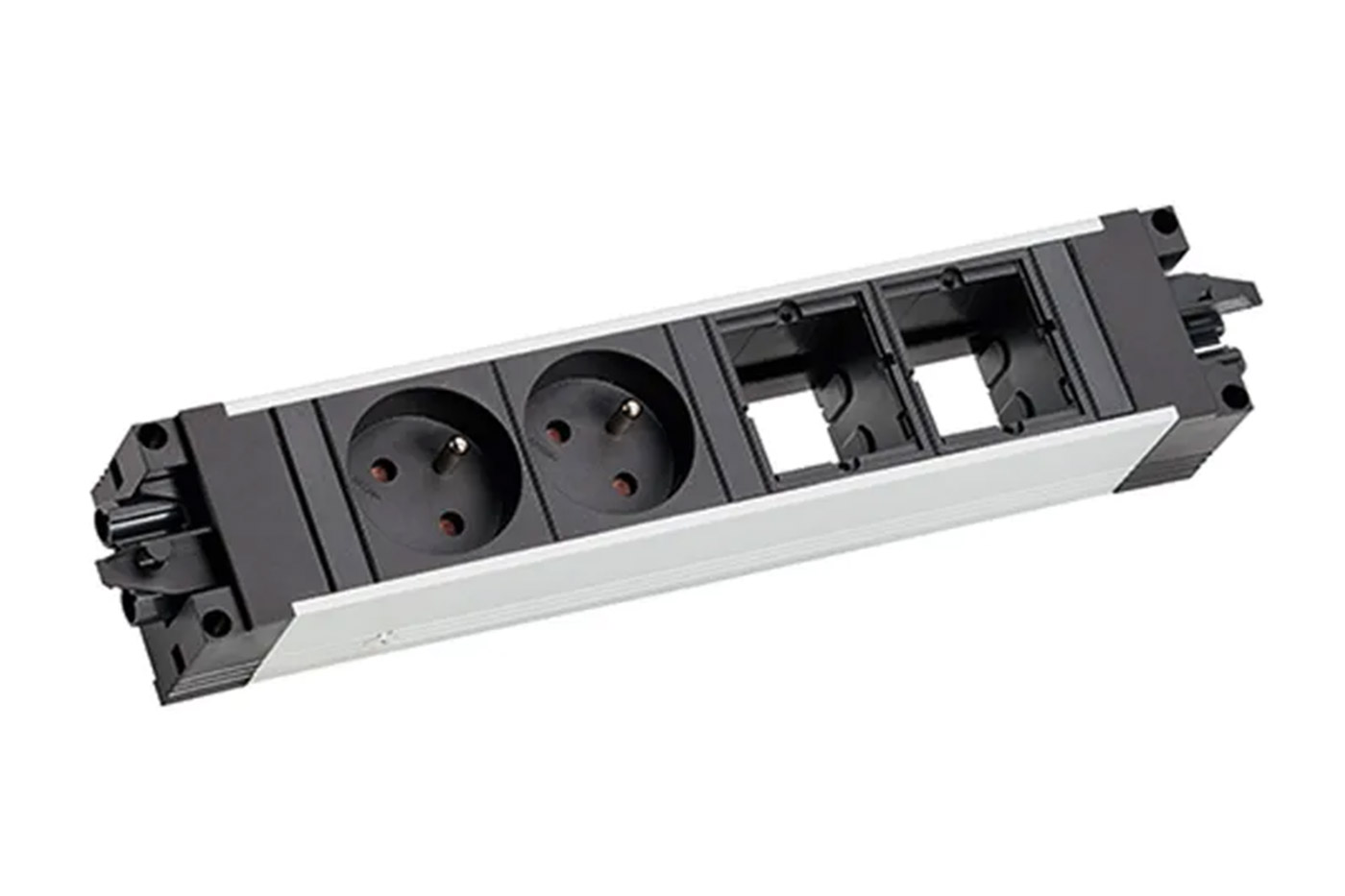 Modul se 2 zásuvkami a 2 volnými pozicemi, s možností spojování za sebe.