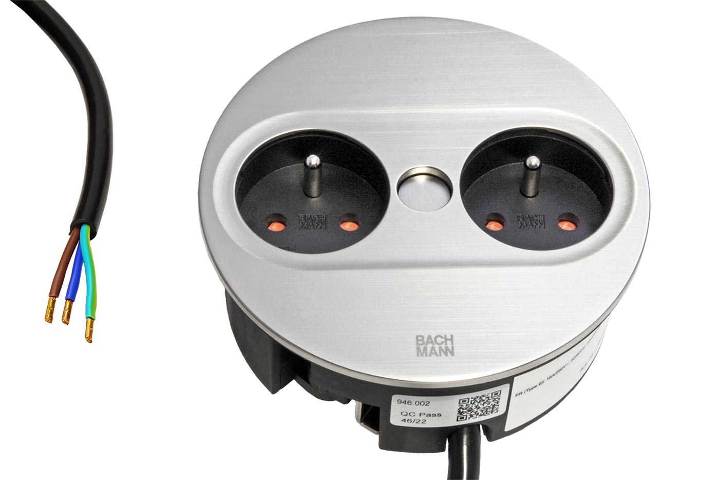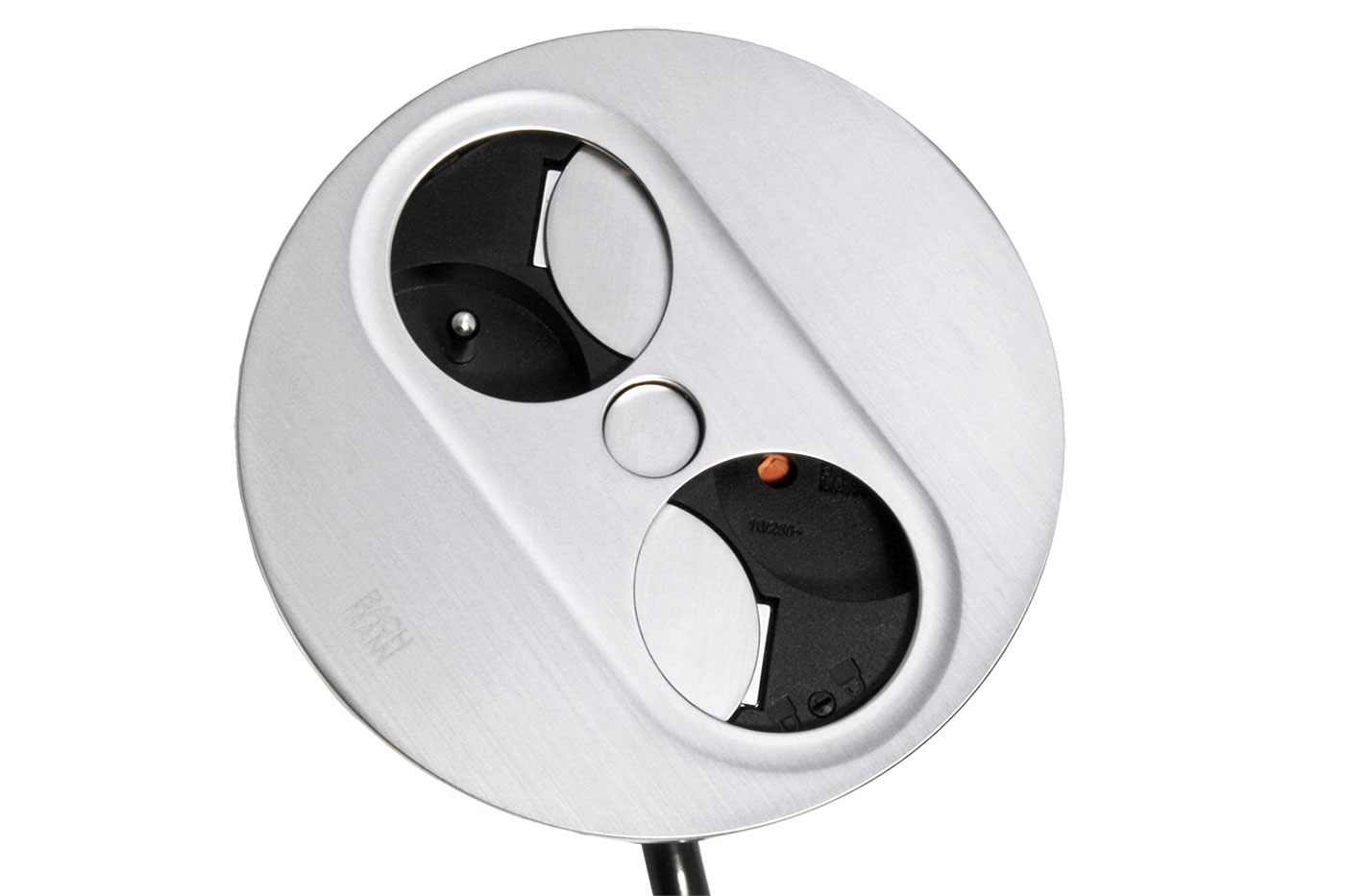 Box se 2 napájecími zásuvkami, určený pro montáž do desky stolu.