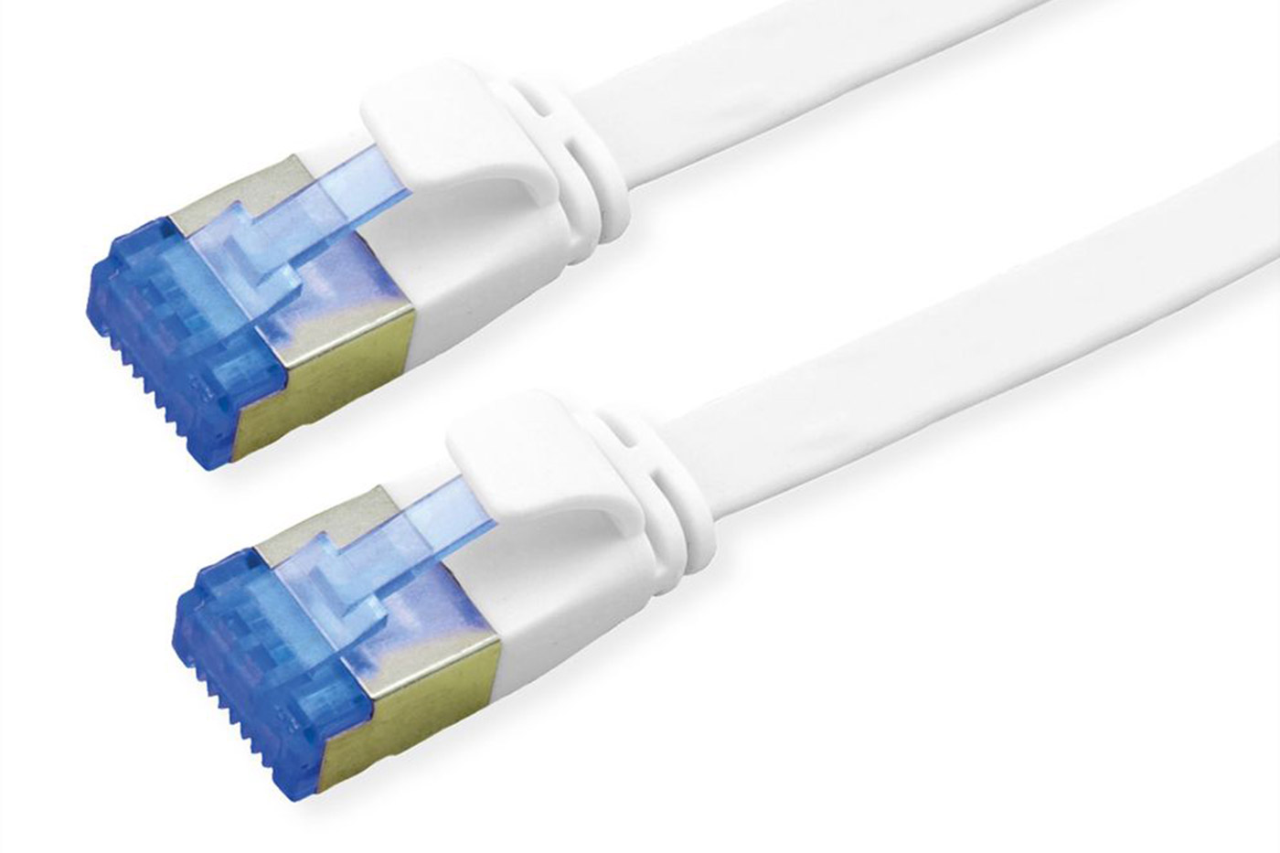 Plochý stíněný patch kabel pro počítačovou síť.