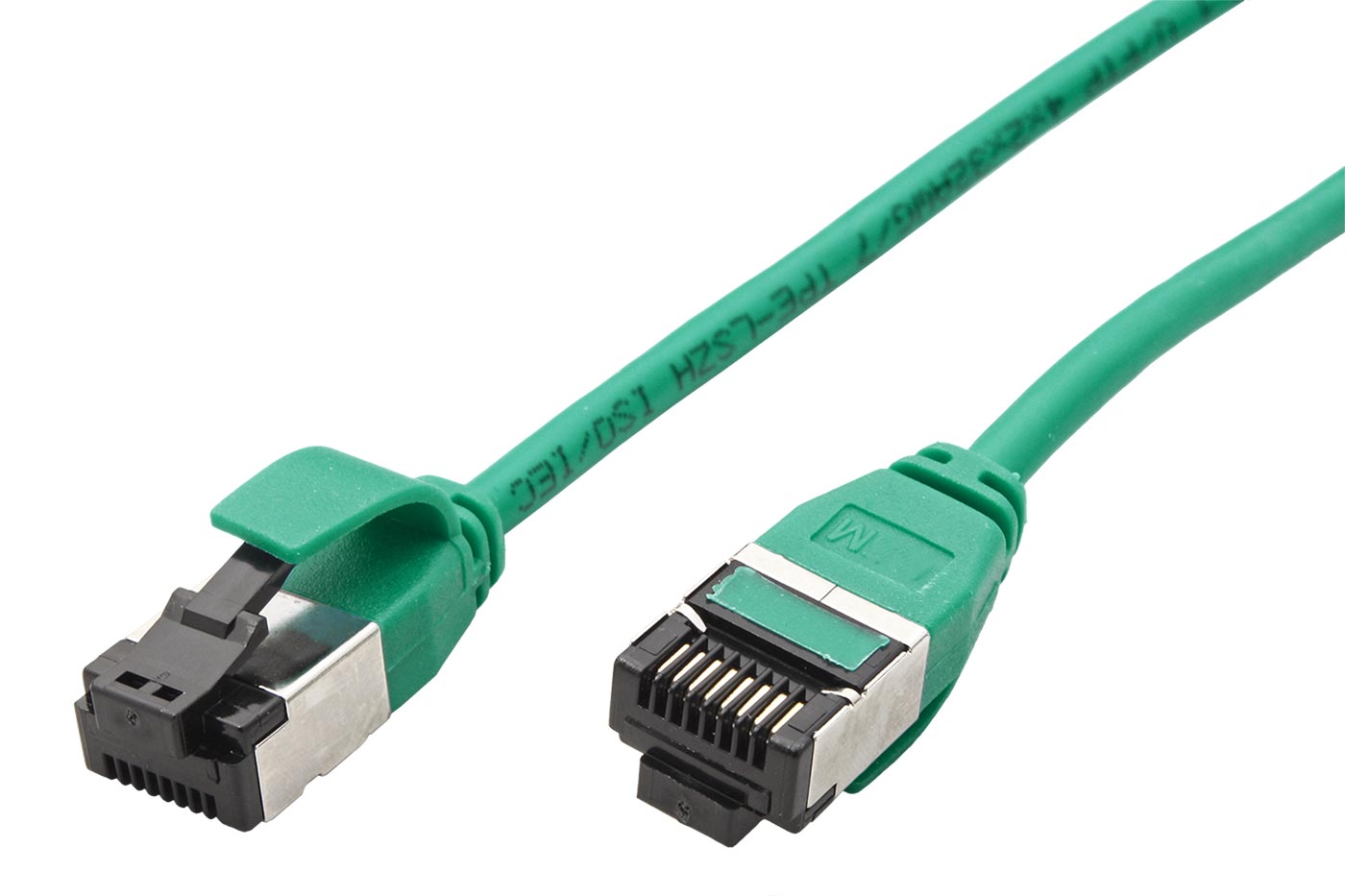 Tenký kabel vhodný do stísněných prostorů. 8-žilový (4 kroucené páry) kabel s modulárními konektory RJ45 na obou koncích. Používá se na datové propojení mezi patchpanely a ethernet přepínači, nebo na připojení počítače do počítačové sítě.