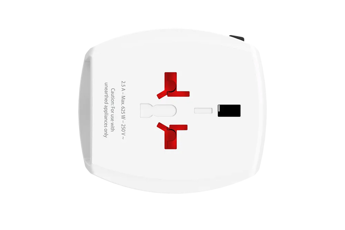 Umožňuje připojit zařízení s dvoupólovými vidlicemi pro EU, Anglii, USA a Austrálii do rúzných zásuvek. Zároveň je možno využít dva USB porty pro nabíjení.