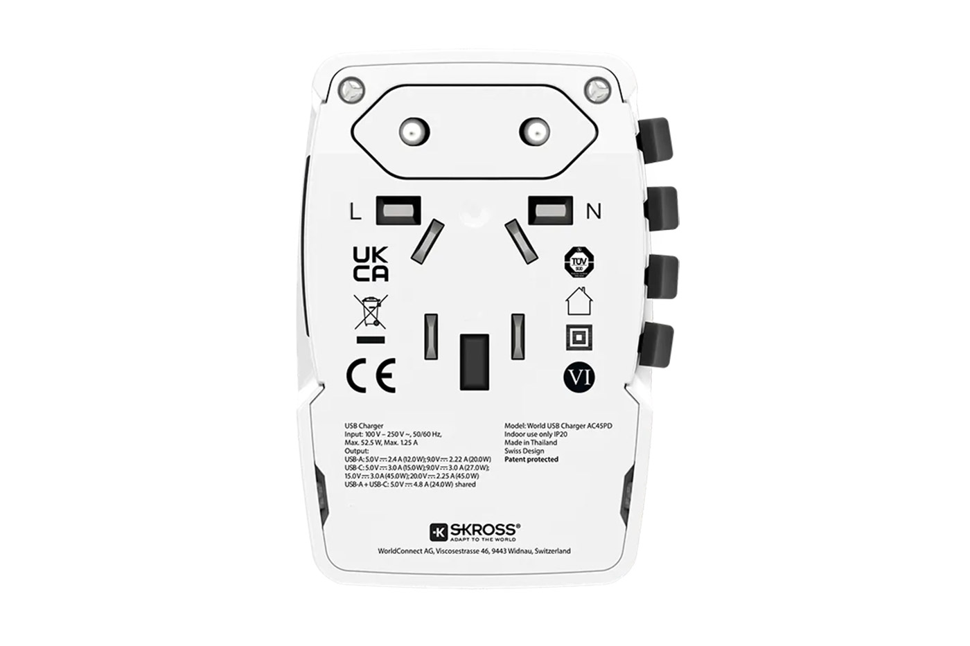 SKROSS Univerzální cestovní napájecí adaptér "World USB Charger AC45PD", PD 45W, USB A + C, kabel USB C