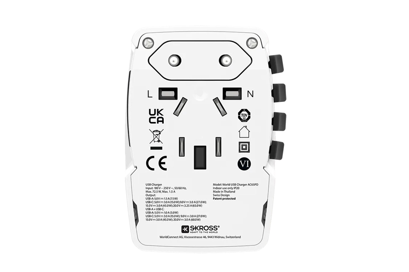 SKROSS Univerzální cestovní napájecí adaptér "World USB Charger AC65PD", PD 65W, USB A + C, kabel USB C