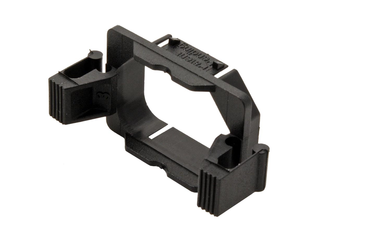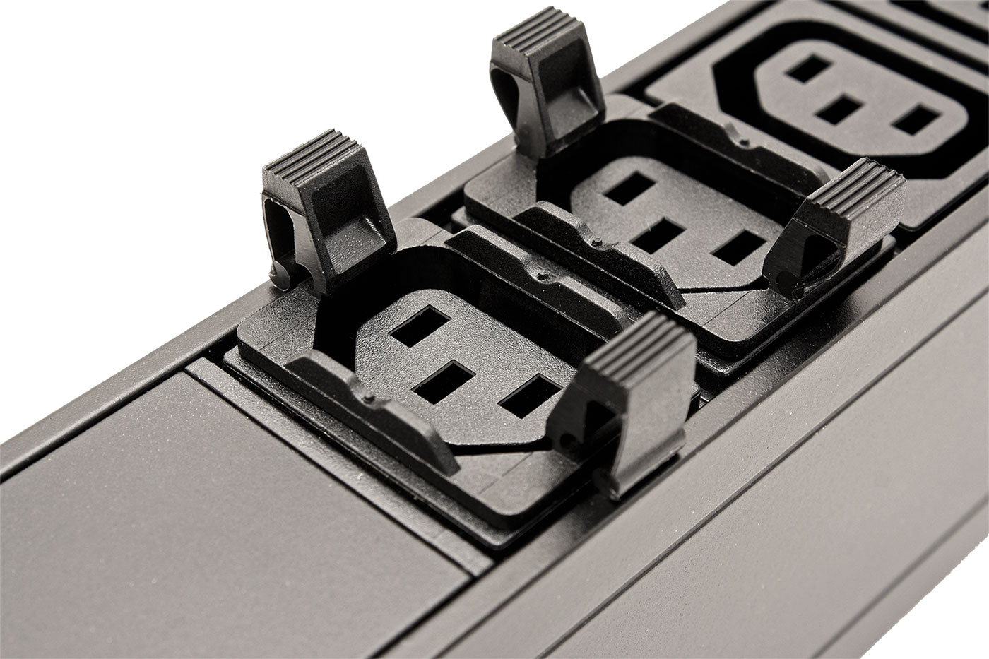 Západka se osazuje do konektoru C13 na panelu a po zasunutí kabelu s konektorem C14 zabezpečuje spojení před vytržením kabelu.