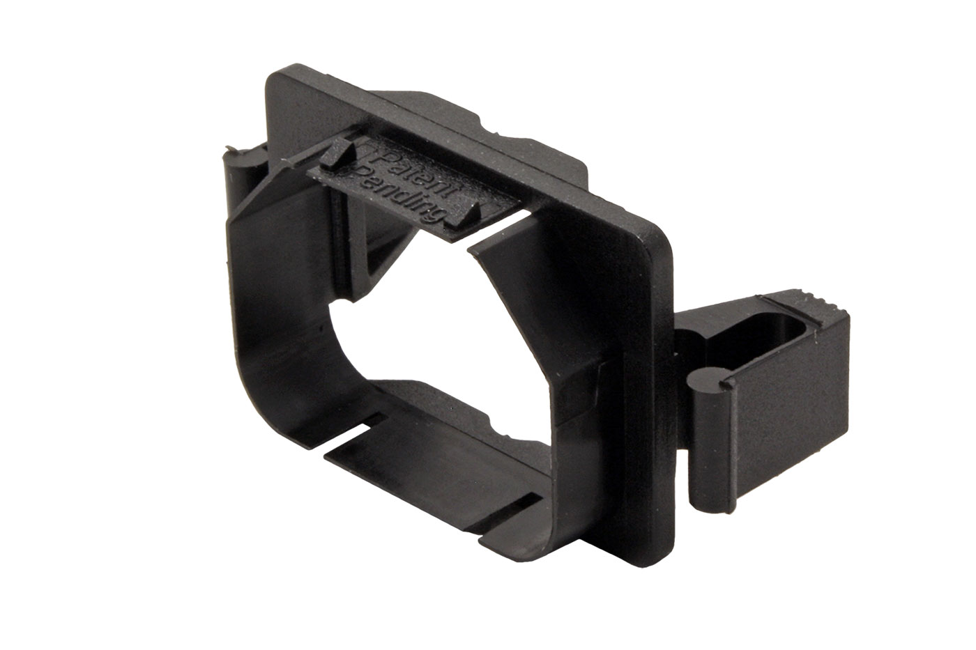 Použití: Západka se osazuje do konektoru C13 na panelu a po zasunutí kabelu s konektorem C14 zabezpečuje spojení před vytržením kabelu.;