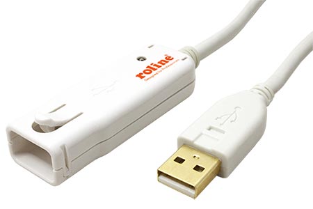 ROLINE USB 2.0 aktivní prodlužovací kabel, 12m, bílý