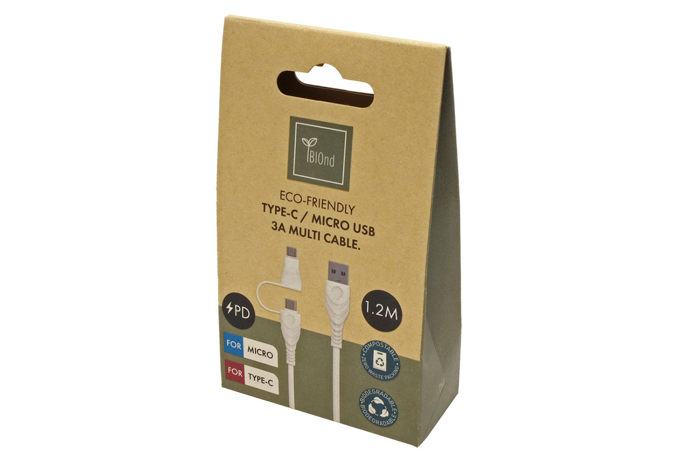 USB 2.0 kabel s konektory USB A a USB C s redukcí na microUSB B. V provedení BIOnd (recyklované materiály, obaly bez plastů).;