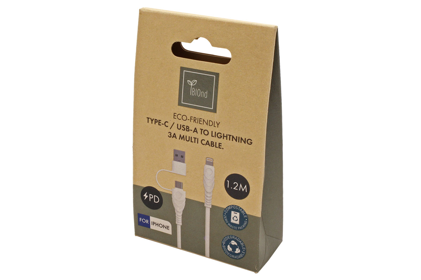 BIOnd USB 2.0 kabel USB C(M) + USB A(M) - Lightning, 3A, 1,2m