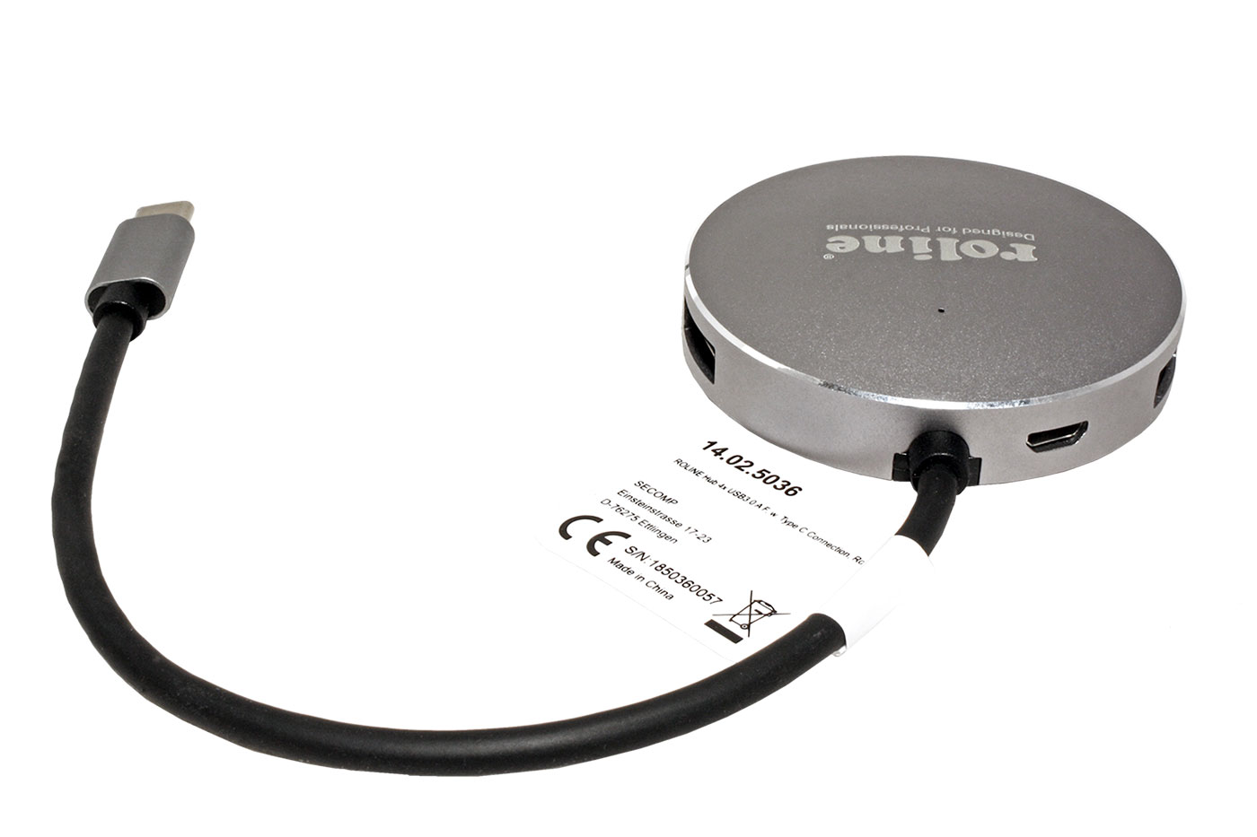ROLINE USB 5Gbps Hub, USB C(M) - 4x USB3.0 A(F), kulatý