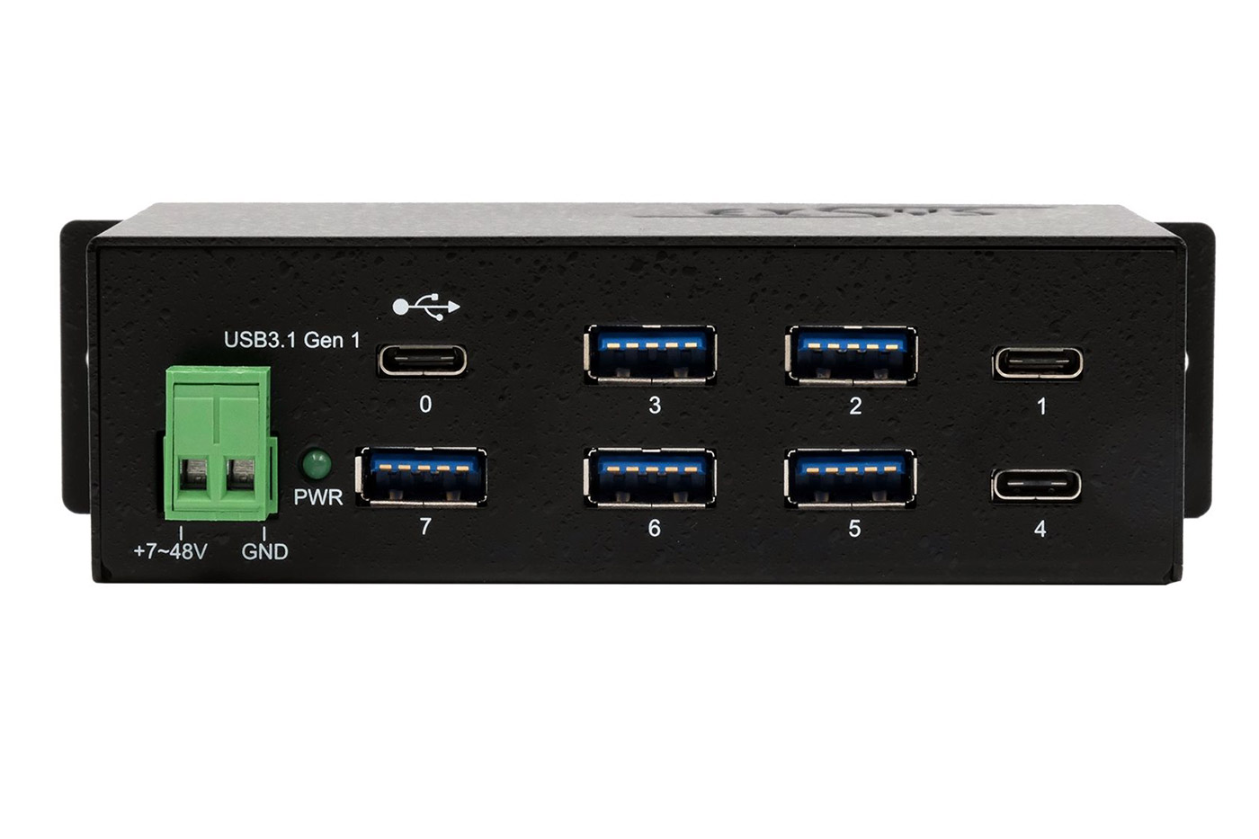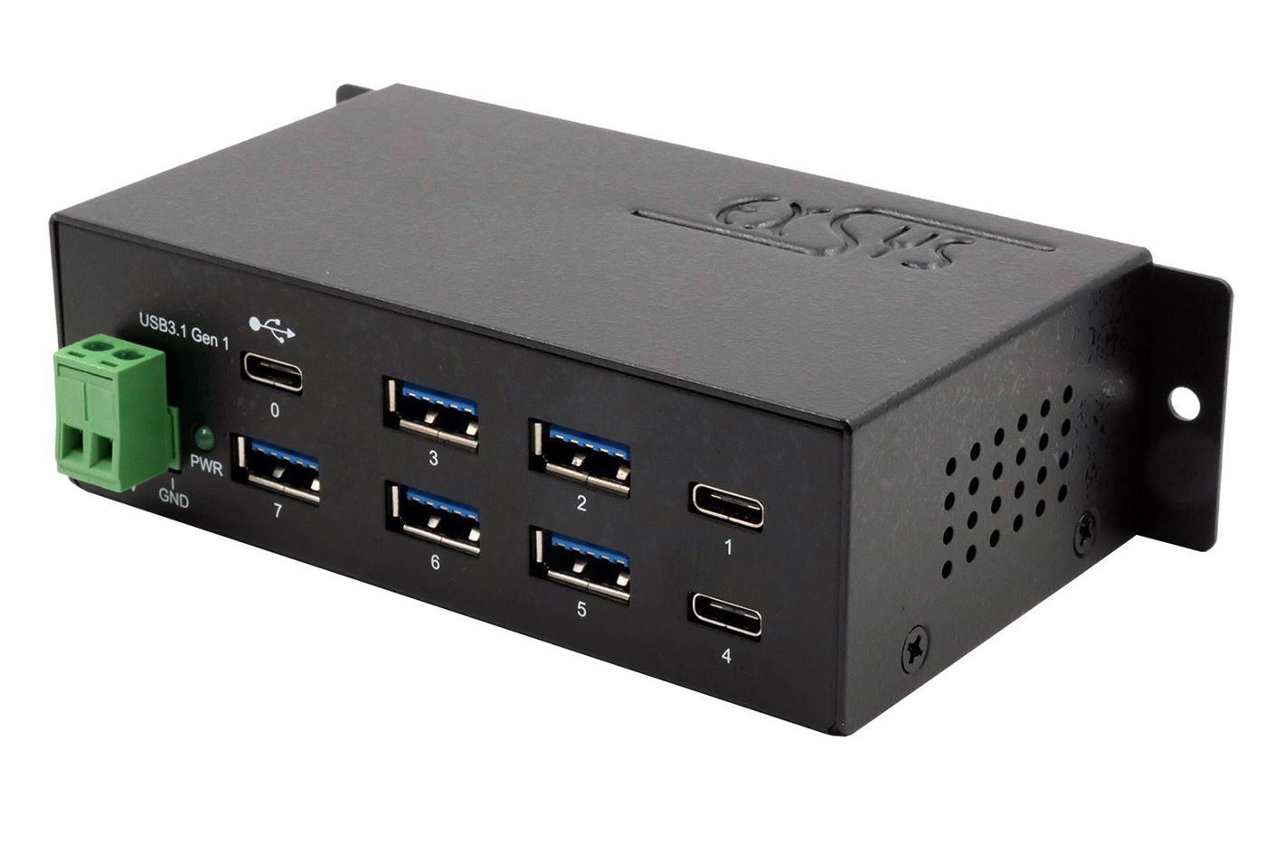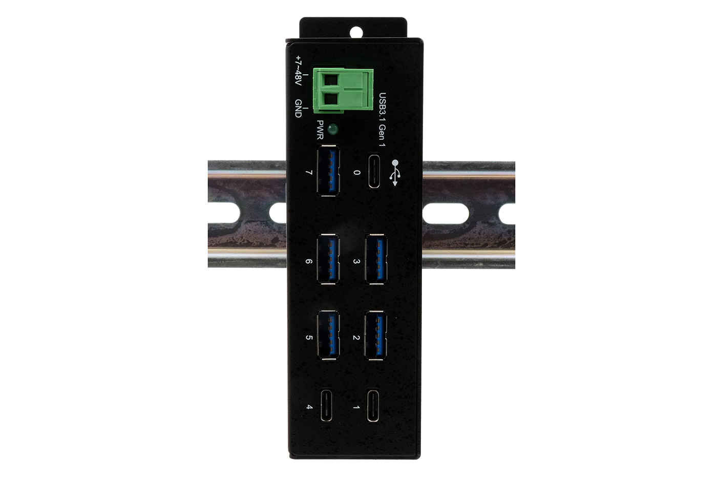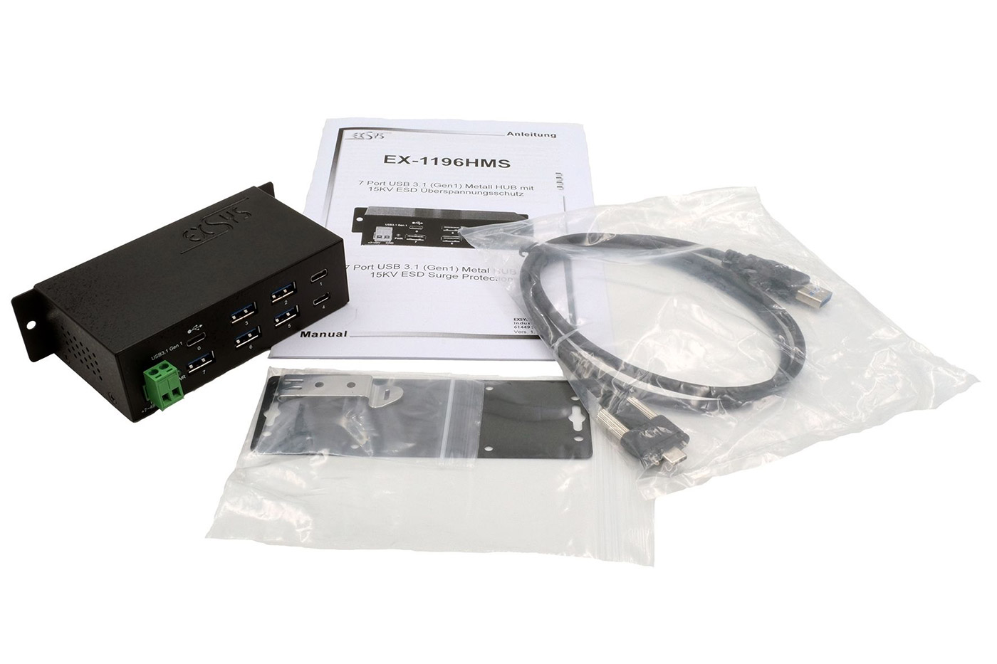 ExSys USB hub 10Gbps USB C(F) -> 2x USB C(F) + 5x USB3.0 A(F), průmyslový, na DIN lištu (EX-1196HMS)