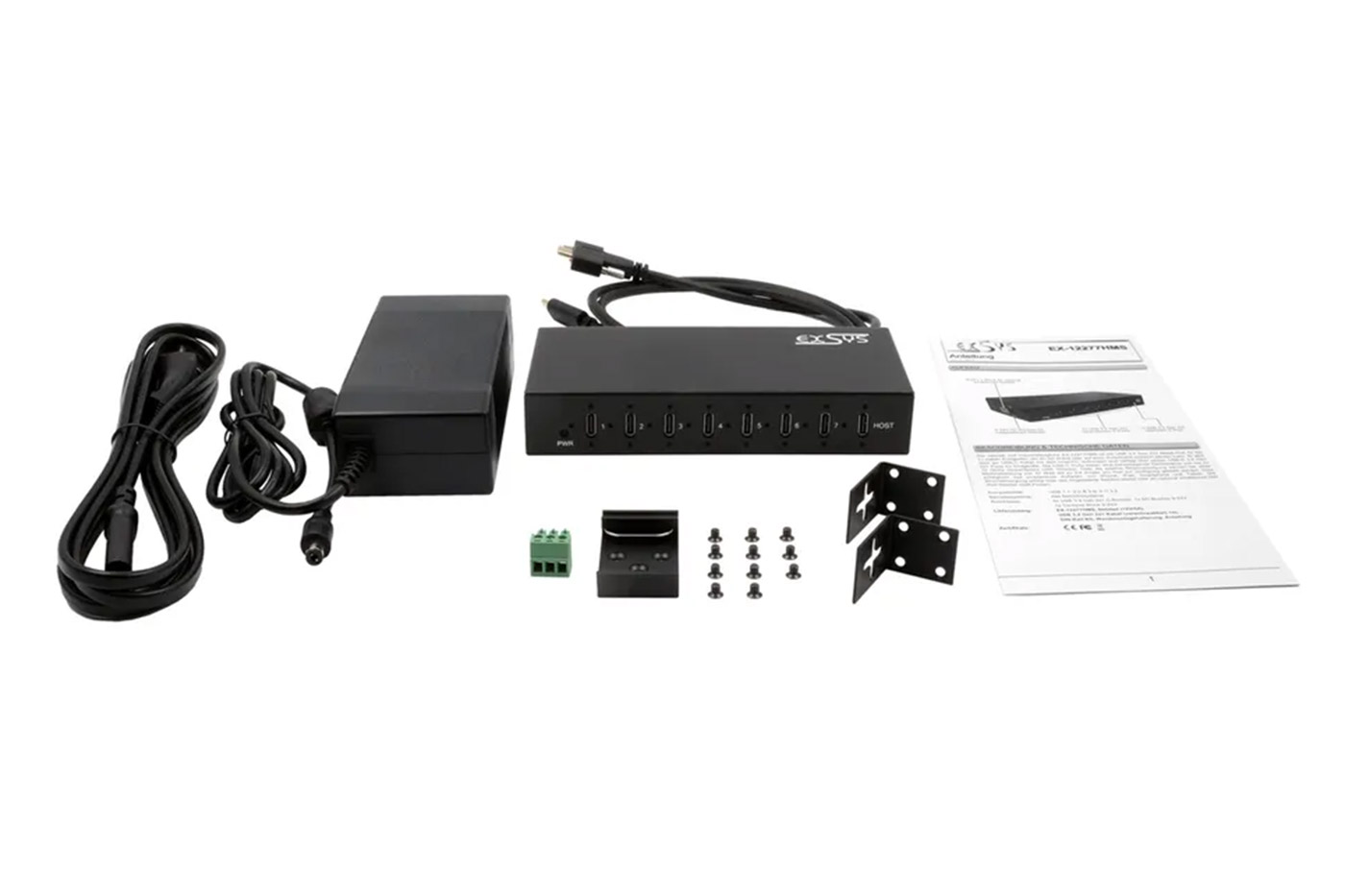ExSys USB hub 10Gbps USB C(F) -> 7x USB C(F), průmyslový, na DIN lištu (EX-12277HMS)