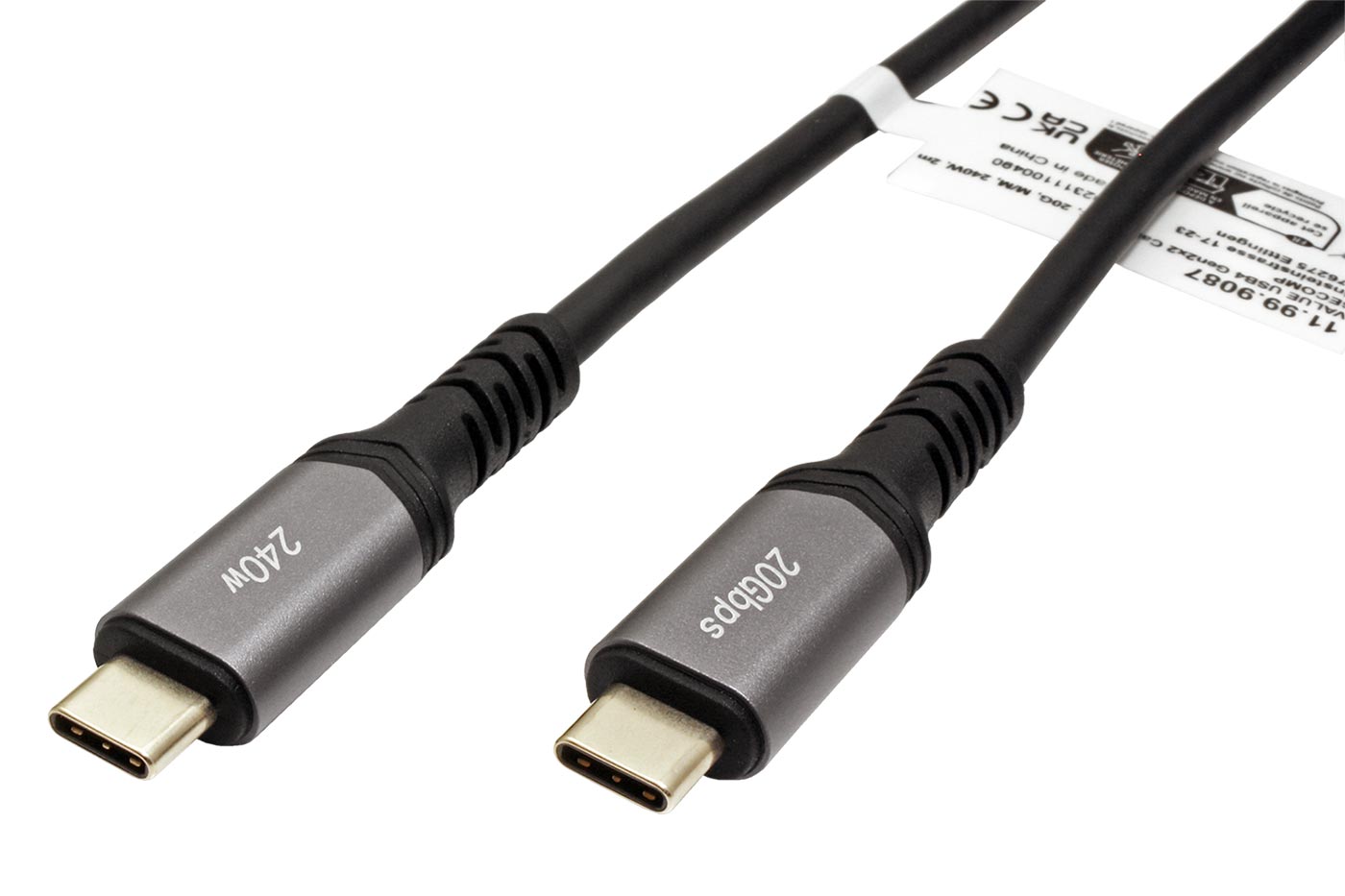 Kabel USB4 generace 2x2 s oboustranným konektorem USB C s podporou PD (Power Delivery) až 240W.;
