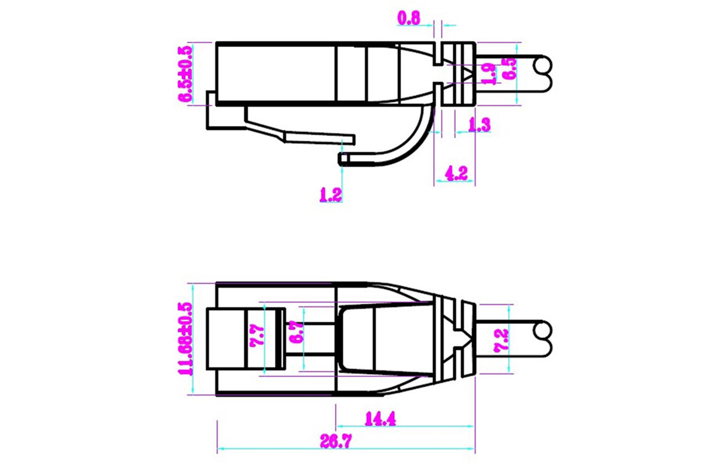 Konektory: 2x RJ45M s krytkou západky (snag-proof, snagless);