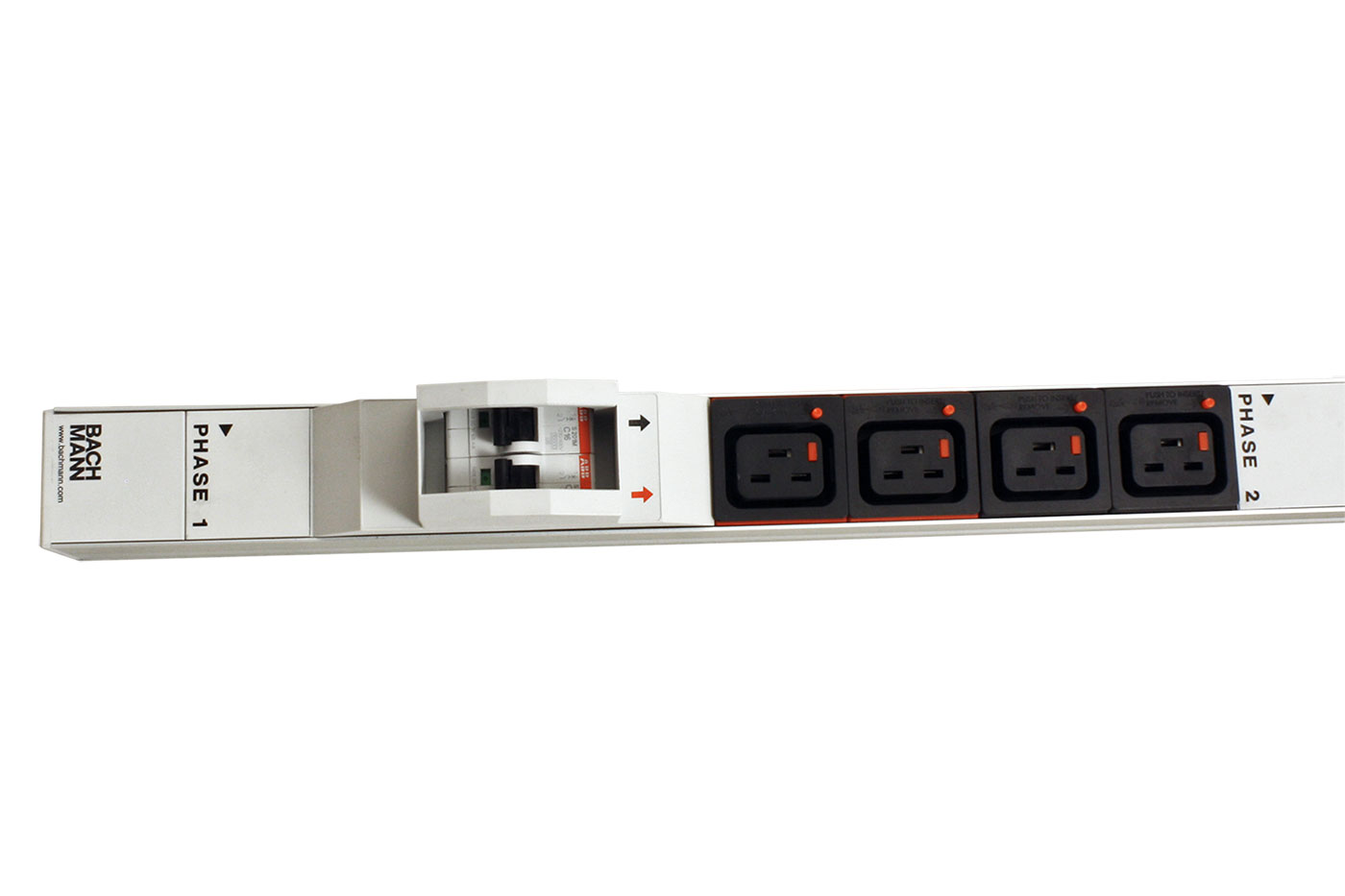 BACHMANN Vertikální napájecí panel 12x IEC320 C19, 3m, 6x jistič, vidlice IEC 60309 3x32A (800.0100)