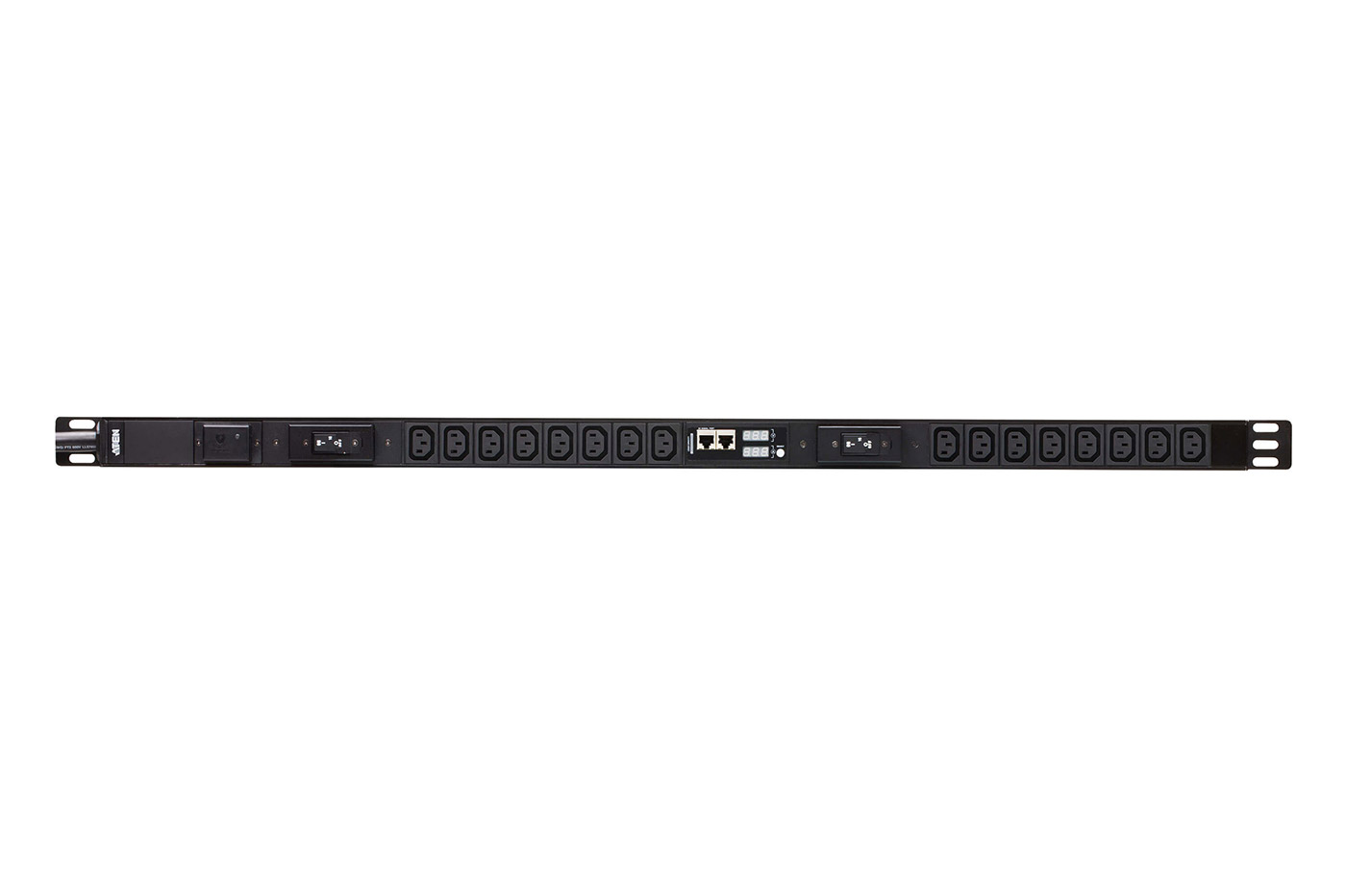 Jednofázový vertikální napájecí panel s 16 zásuvkami C13 a výstupem pro měření. Pro monitorování je nutno použít jednotku EC1000!