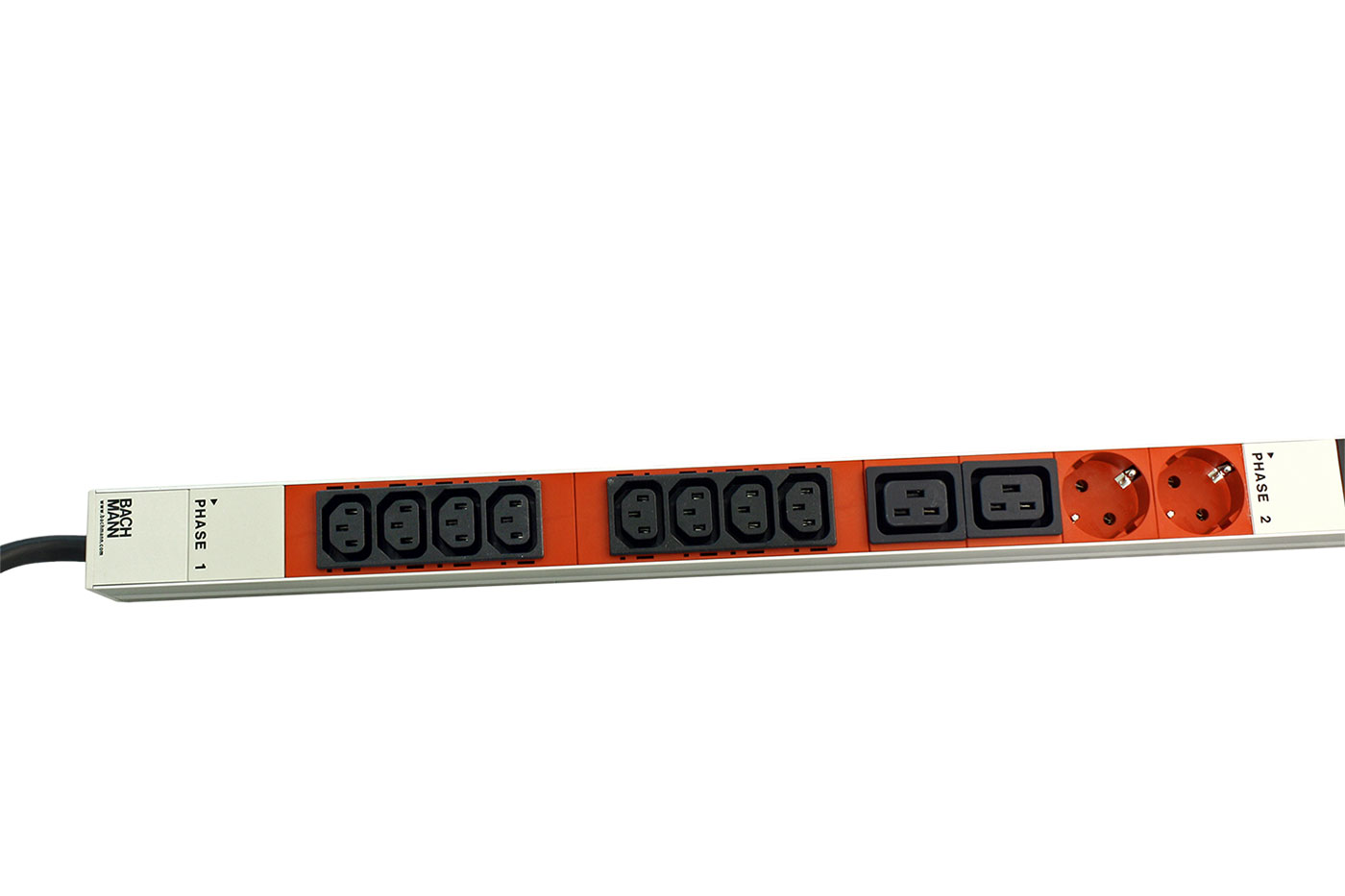 BACHMANN Vertikální napájecí panel 24x IEC320 C13, 6x IEC320 C19, 6x CEE 7/3, 3m, vidlice IEC 60309 3x16A, alu (800.2283)
