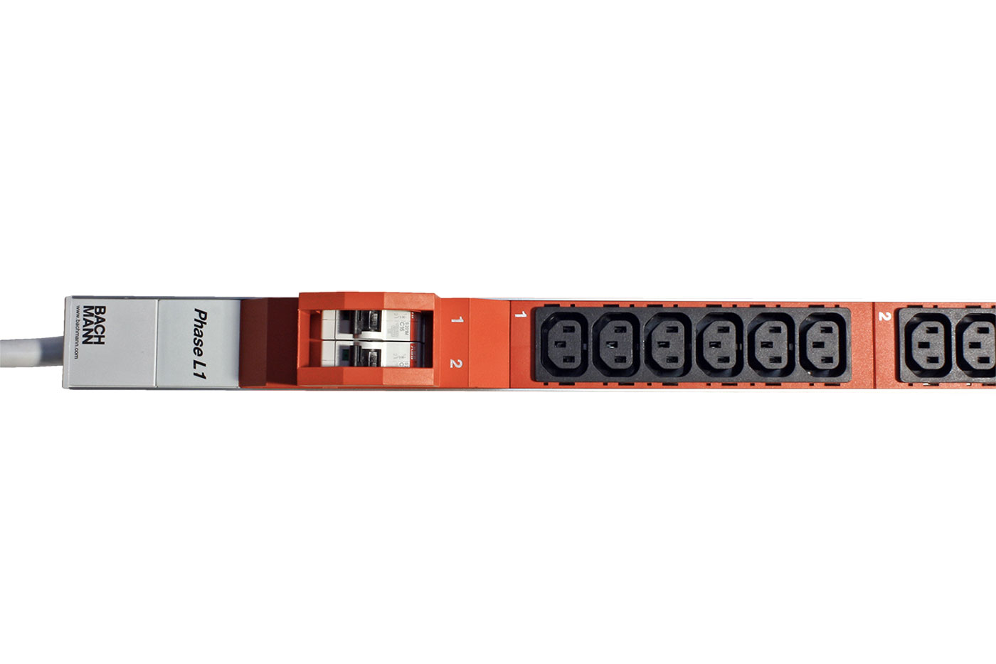 BACHMANN Vertikální napájecí panel 36x IEC320 C13, 3m, 6x jistič, vidlice IEC 60309 3x32A (800.0102)