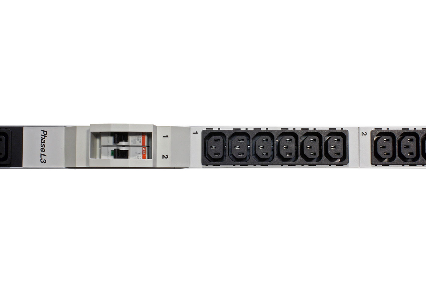 Třífázový vertikální napájecí panel se 36 zásuvkami IEC320 C13.;