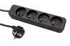 Vícenásobná zásuvka 230V/10A, 4x zásuvka CZ, CEE 7/7(M) - 4x 7/5(F), černá, 3m