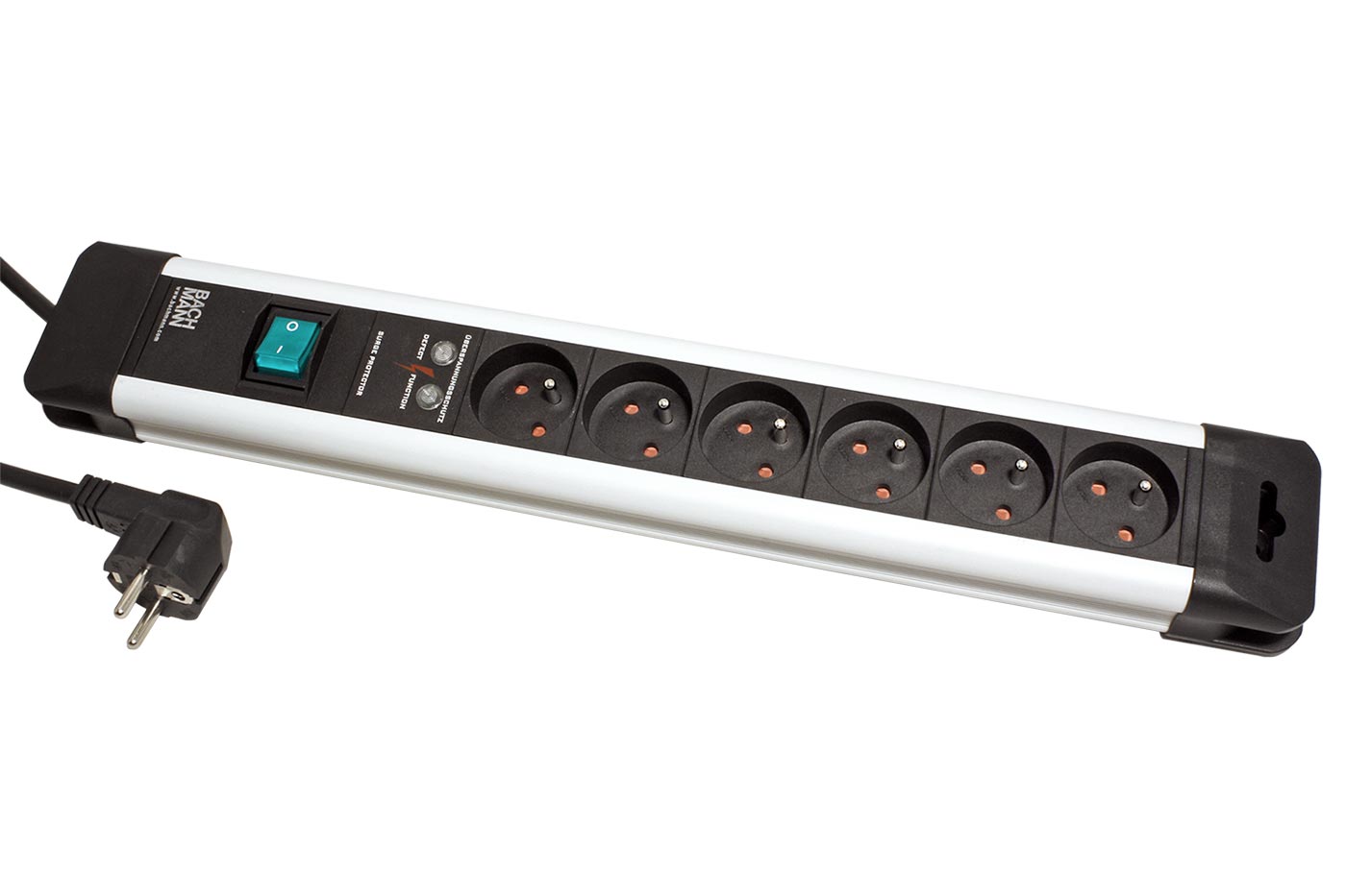 BACHMANN Vícenásobná zásuvka 230V/16A, 6x zásuvka CZ, přepěťová ochrana, vypínač, 2m (330.104F)