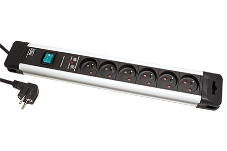 Kompaktní přípojné místo se síťovými zásuvkami s možností navinutí kabelu na tělo zásuvky a zavěšení. Obsahuje přepěťovou ochranu, chránící připojená zařízení proti nežádoucím přepěťovým špičkám na rozvodné síti. S vypínačem pro vypnutí všech zásuvek najednou.