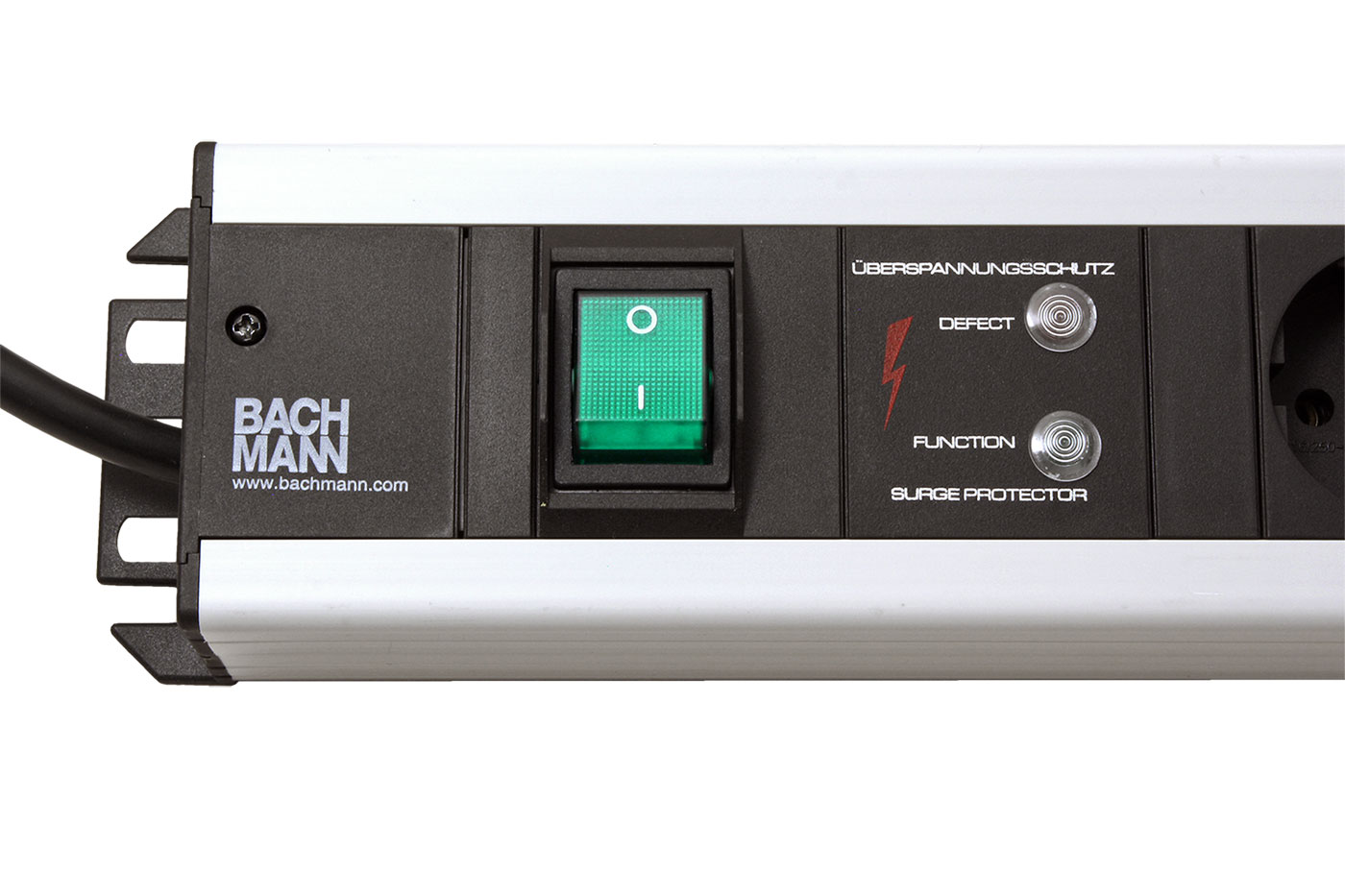 BACHMANN Vícenásobná zásuvka 230V/16A, 6x zásuvka DE, vypínač, přepěťová ochrana, 2m (300.011)