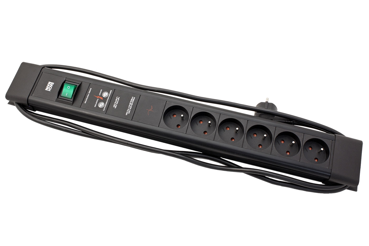 Kompaktní přípojné místo se síťovými zásuvkami s možností navinutí kabelu na tělo zásuvky a zavěšení. Obsahuje přepěťovou ochranu, chránící připojená zařízení proti nežádoucím přepěťovým špičkám na rozvodné síti a doplňkový filtr zabraňující pronikání rušení na vyšších frekvencích. S vypínačem pro vypnutí všech zásuvek najednou.