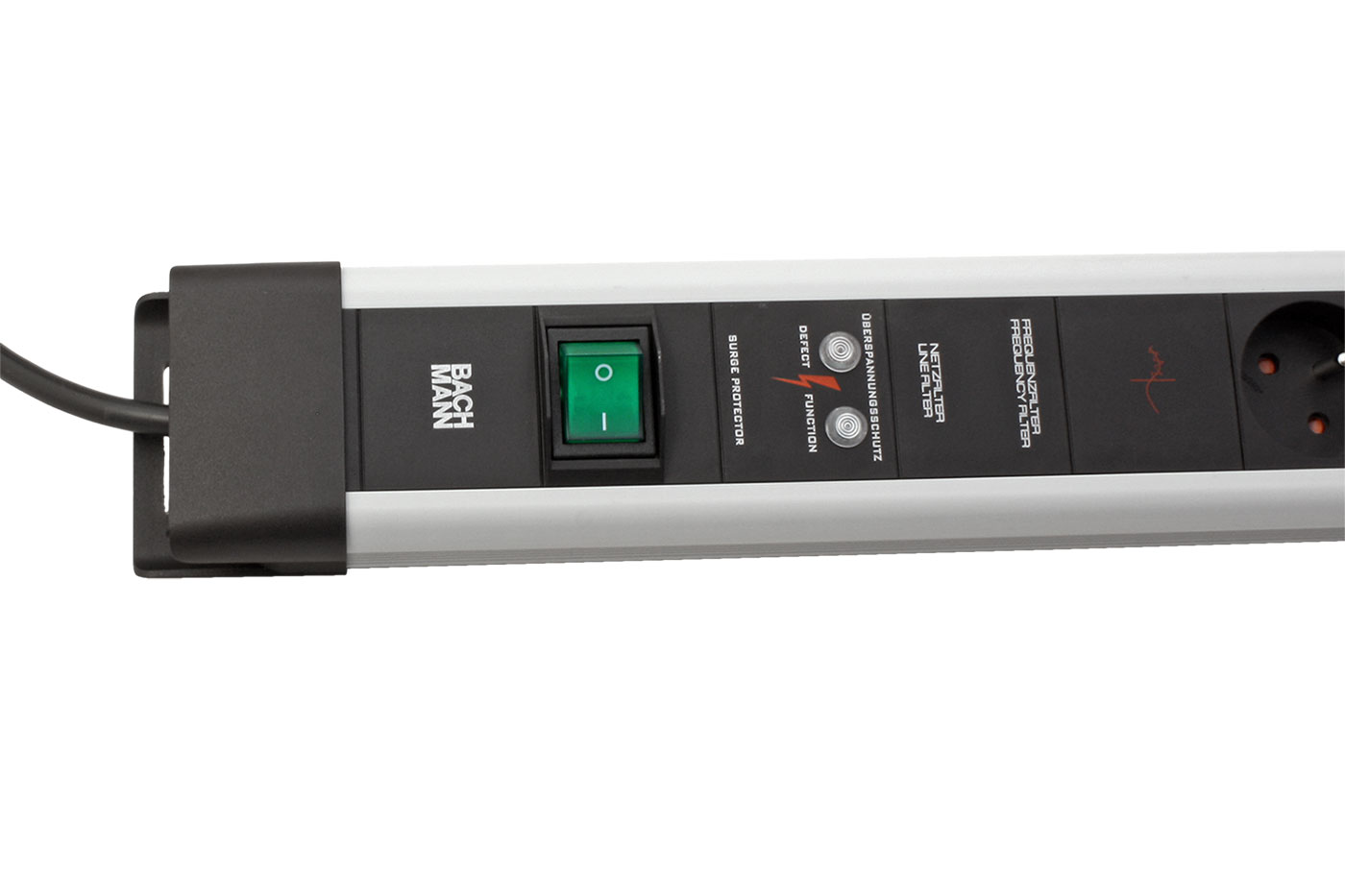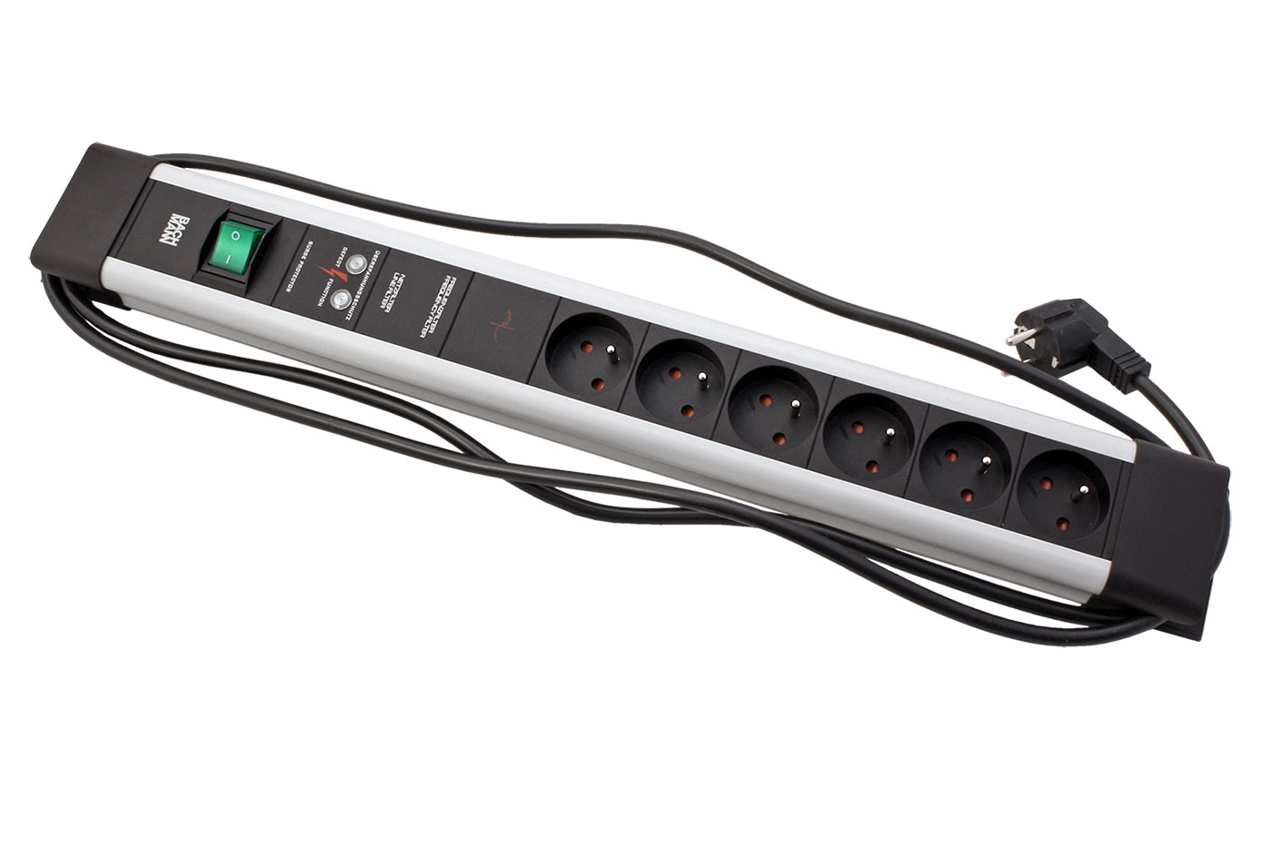 Kompaktní přípojné místo se síťovými zásuvkami s možností navinutí kabelu na tělo zásuvky a zavěšení. Obsahuje přepěťovou ochranu, chránící připojená zařízení proti nežádoucím přepěťovým špičkám na rozvodné síti a doplňkový filtr zabraňující pronikání rušení na vyšších frekvencích. S vypínačem pro vypnutí všech zásuvek najednou.