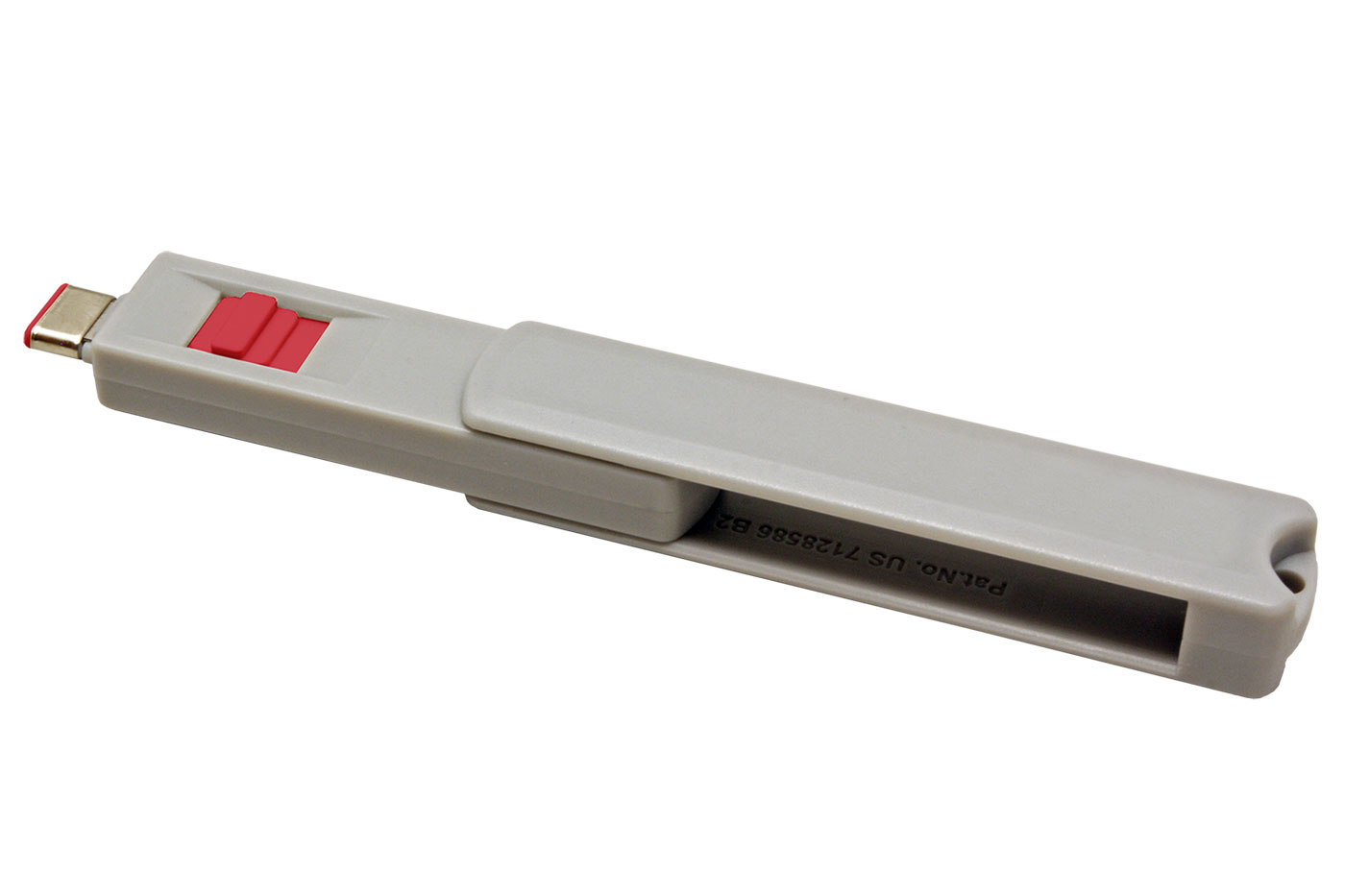 Ochrana USB C zásuvky před poškozením, znečištěním a neoprávněným použitím. Systém barevného kódování umožňuje manipulovat se záslepkou dané barvy pouze klíčem stejné barvy.