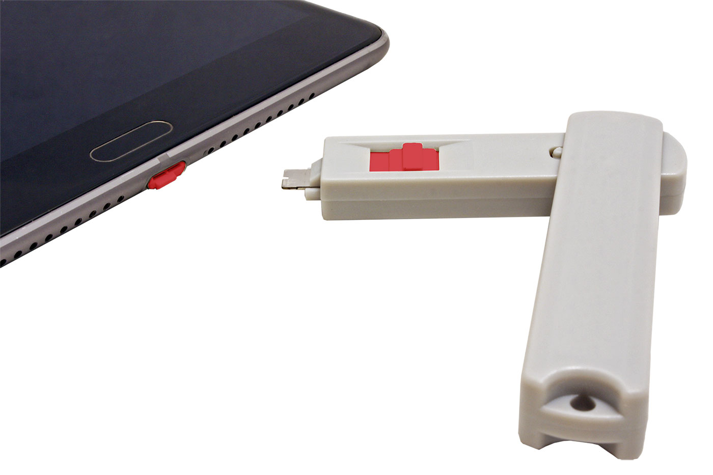 Záslepka USB C zásuvky (port blocker). Včetně klíče pro vyjmutí záslepky z portu.