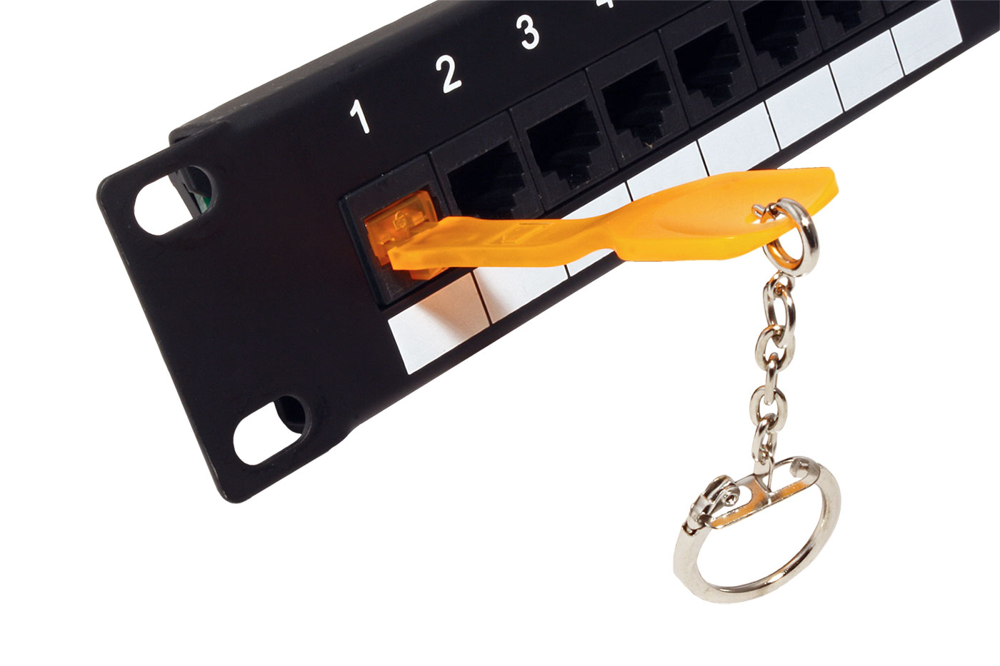 Použití: Ochrana RJ45 zásuvky před poškozením, znečištěním a neoprávněným použitím. Systém barevného kódování umožňuje manipulovat se záslepkou dané barvy pouze klíčem stejné barvy.;