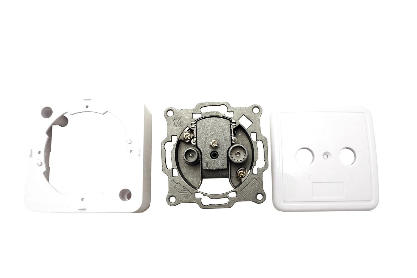 Standardní účastnická zásuvka pro připojení televize a rádia.;