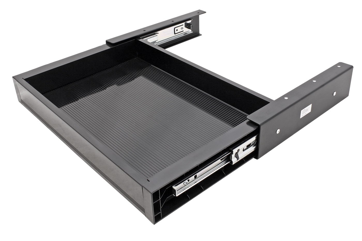 Robustní zásuvka na drobné věci. Zavěšení těsně pod stolem.