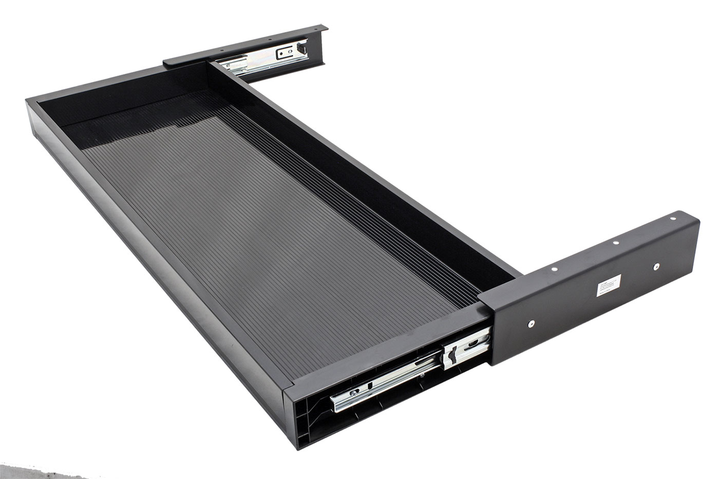 Robustní zásuvka na drobné věci. Zavěšení těsně pod stolem.