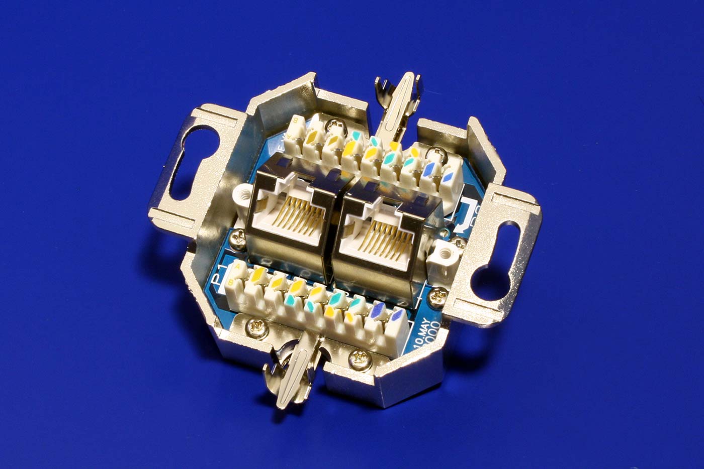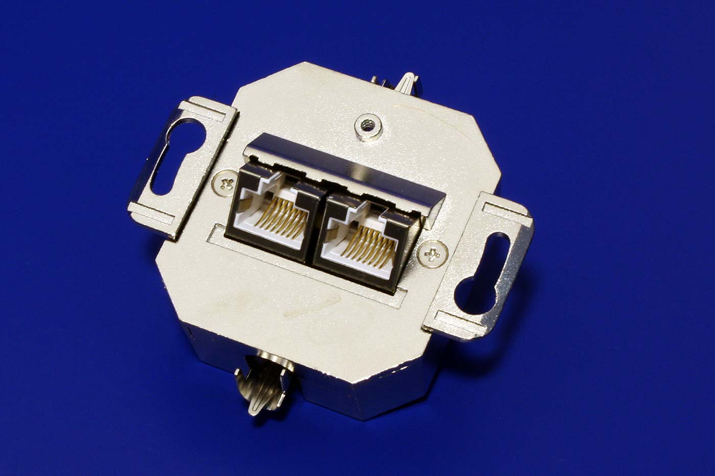 Stíněná zásuvka pro kabeláž kategorie 5e. Montáž pod omítku (do přístrojové montážní krabice).
