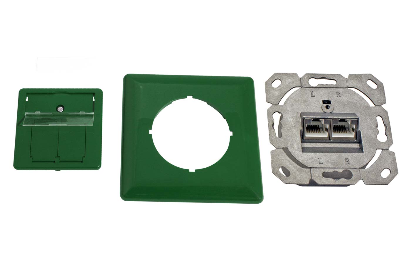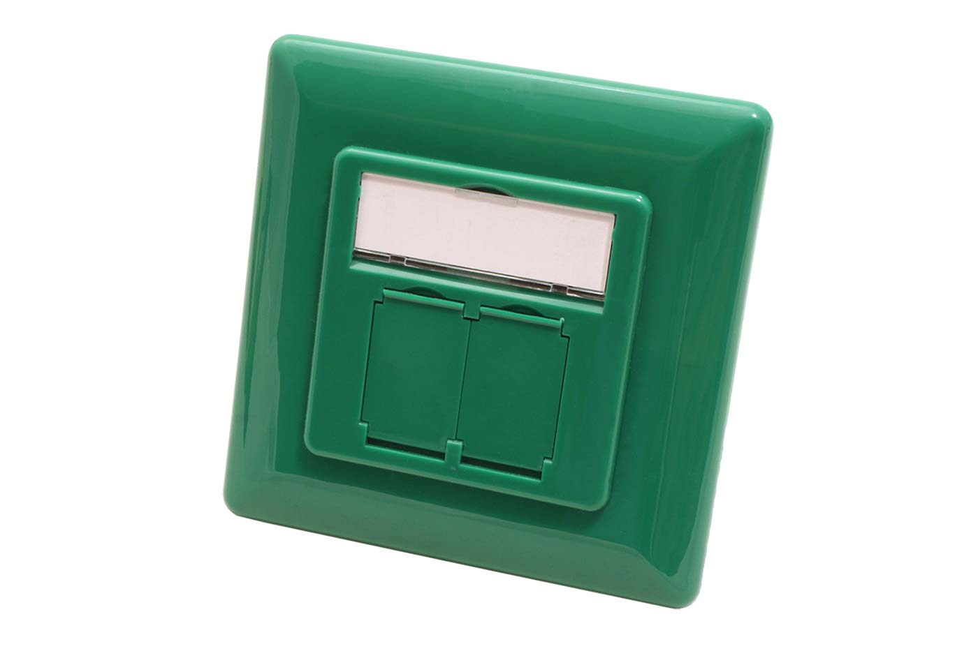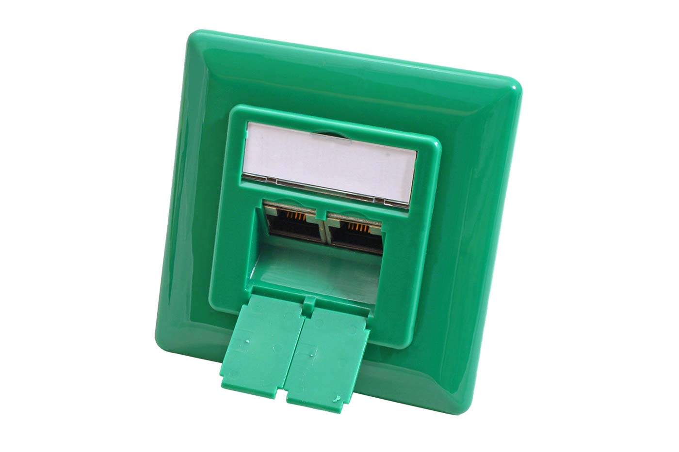 goobay Zásuvka STP kat. 6 pod omítku, 2 konektory, vertikální přívod, zelená