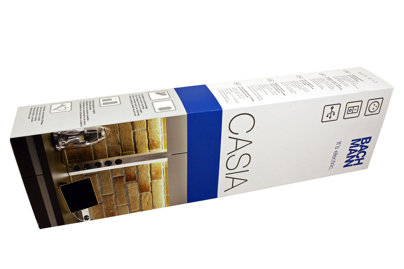 Použití: Elegantní přípojné místo se síťovými zásuvkami a 2 USB zásuvkami. Lištu je možno montovat na stěnu, nebo do rohu. Je vybavena krycím plechem, umožňujícím zakrytí zbývající části rohu (do max. délky 58cm);